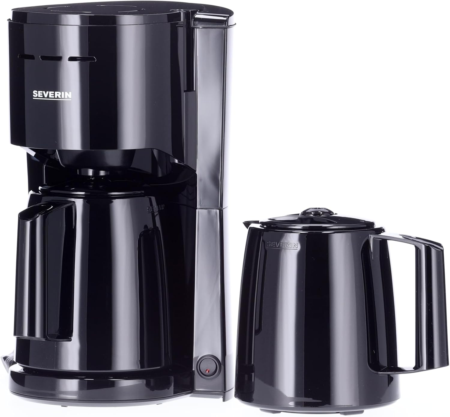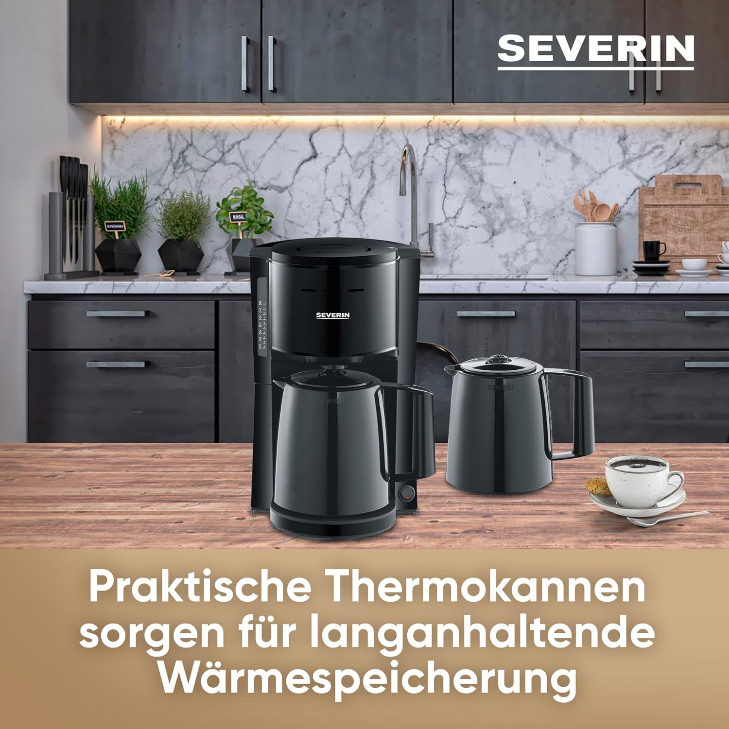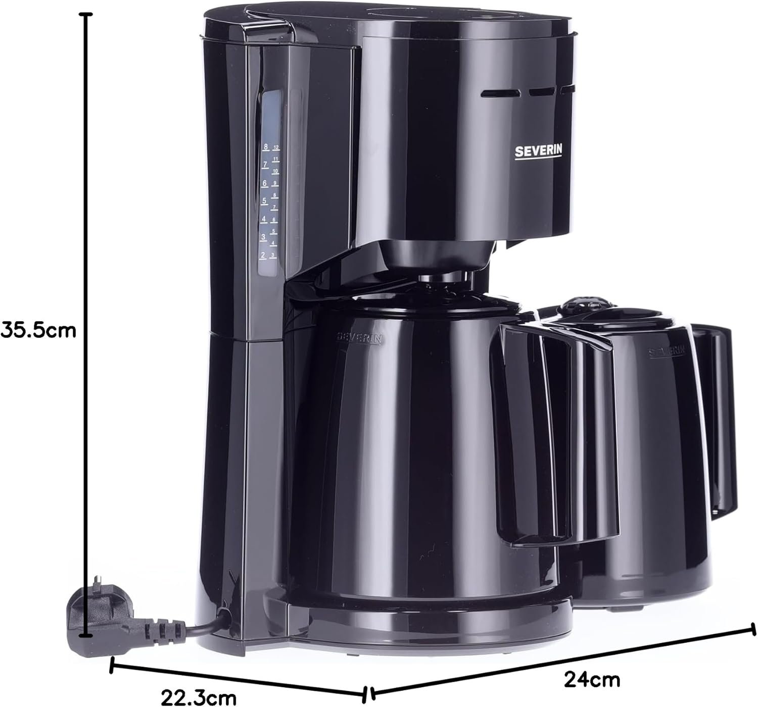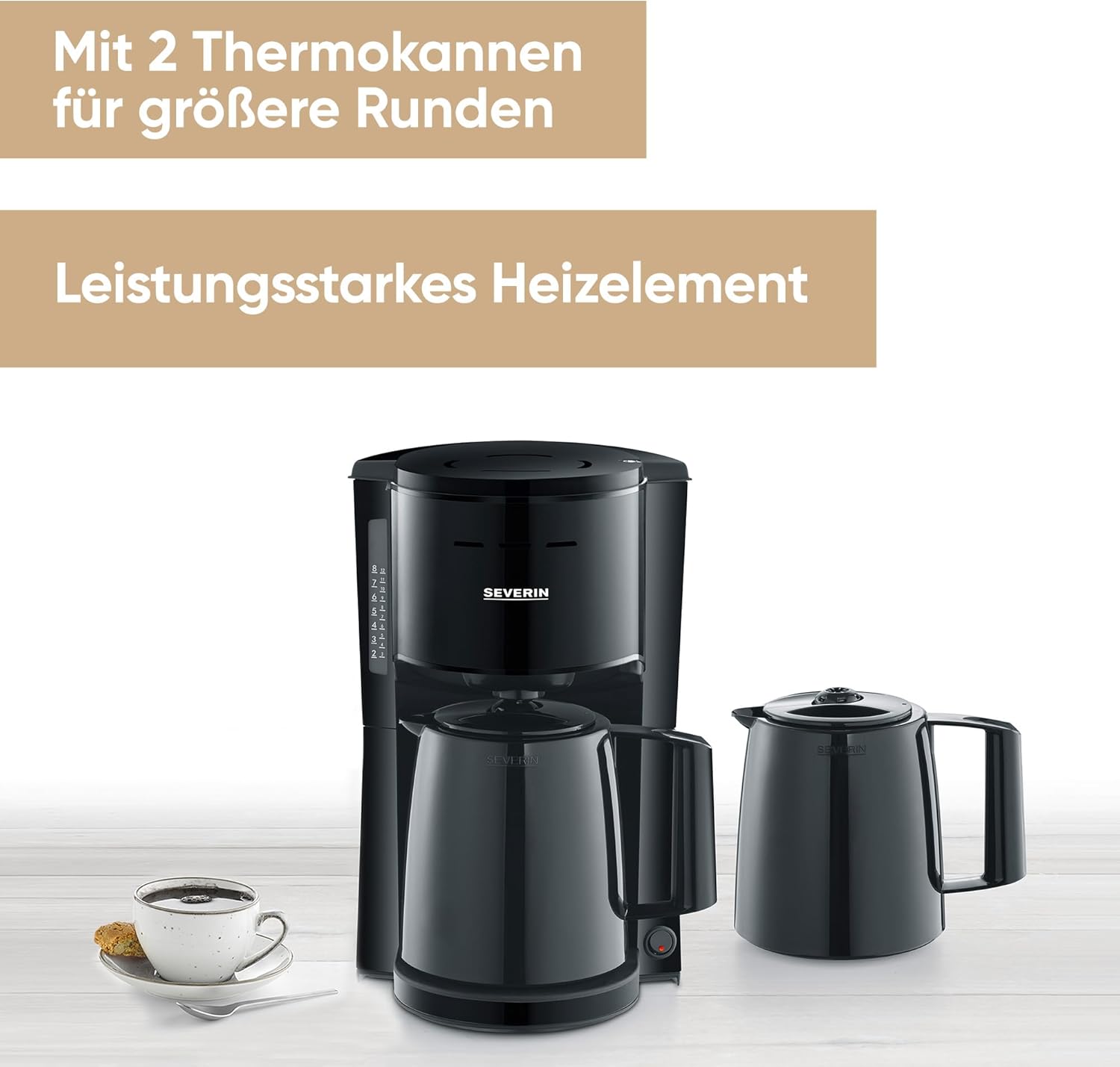 SEVERIN KA 9307 Филтърна кафе машина с 2 термокани, Кафе машина за до 8 чаши на кана, Филтърна машина с 2 изолирани кани, Черна
