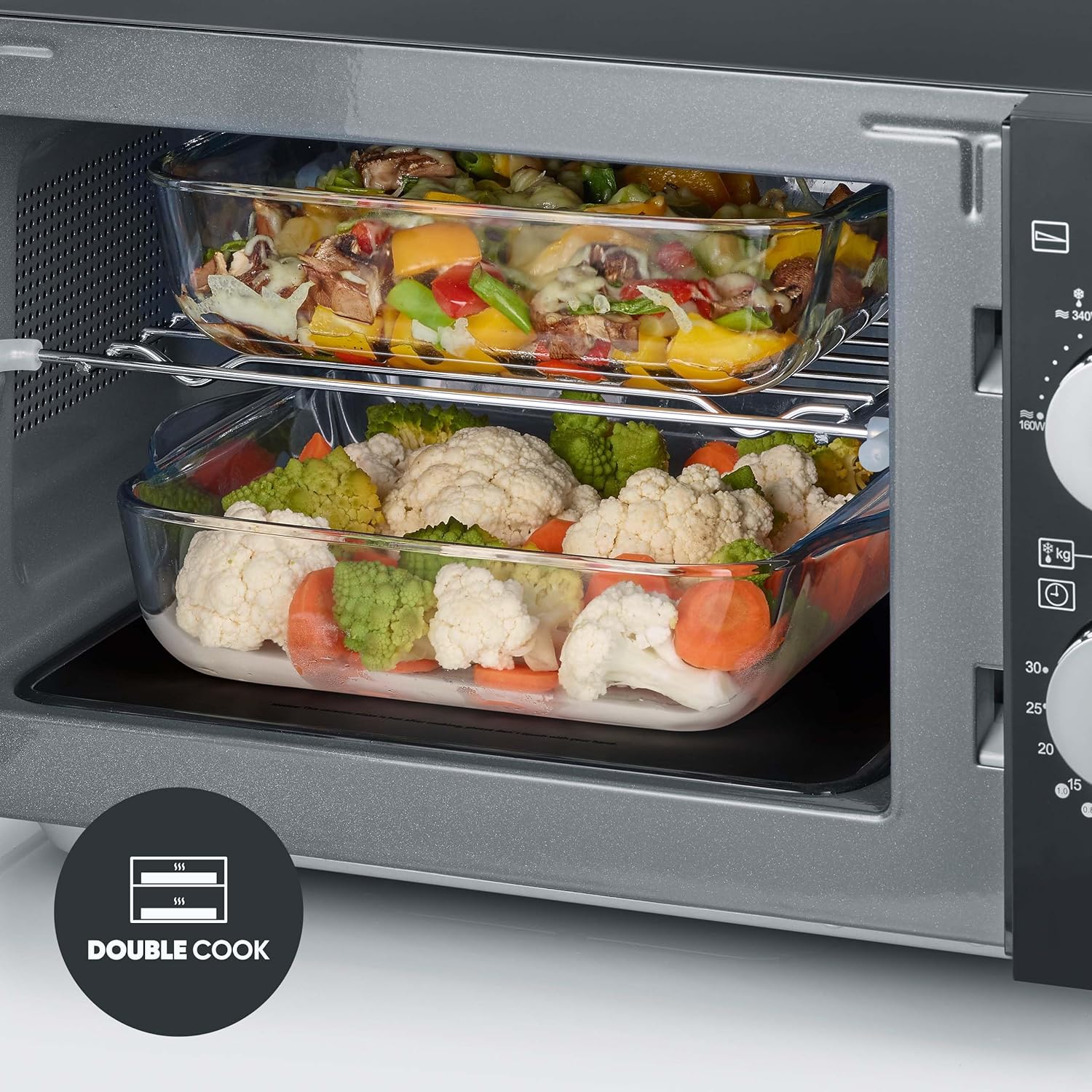 • 2 нива: с включената решетка за готвене се създава допълнително ниво за едновременно готвене или затопляне на 2 ястия