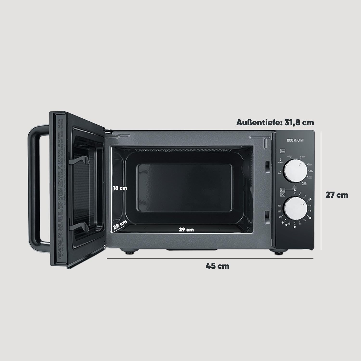 • С функция за грил: идеална за печене или гратиниране на храна благодарение на мощните 1000 W без предварително загряване