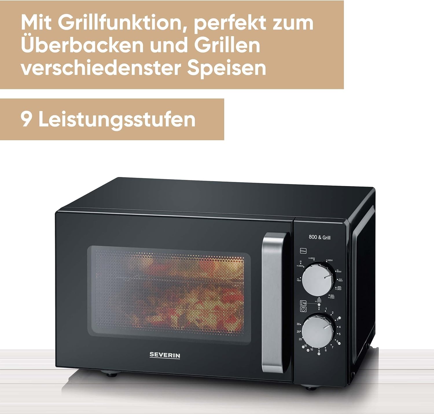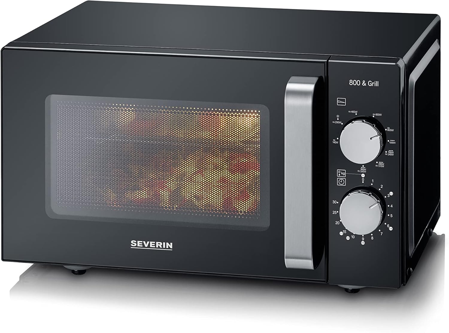• Детайли: Микровълнова фурна SEVERIN с функция за грил, готвене на две нива благодарение на допълнителна решетка за вграждане, с настройка на мощността и температурата и голяма използваема площ, 20 л, 800 W/1000 W, артикулен номер 7762