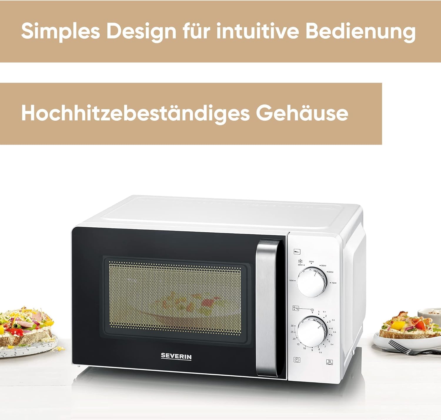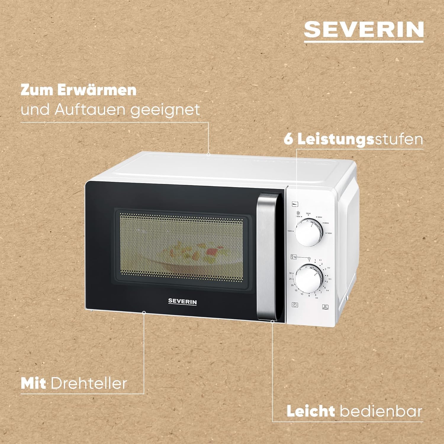 • Практична микровълнова фурна - Микровълновата фурна SEVERIN е подходяща за размразяване и затопляне на храна и е особено лесна и интуитивна за употреба благодарение на 2 копчета.