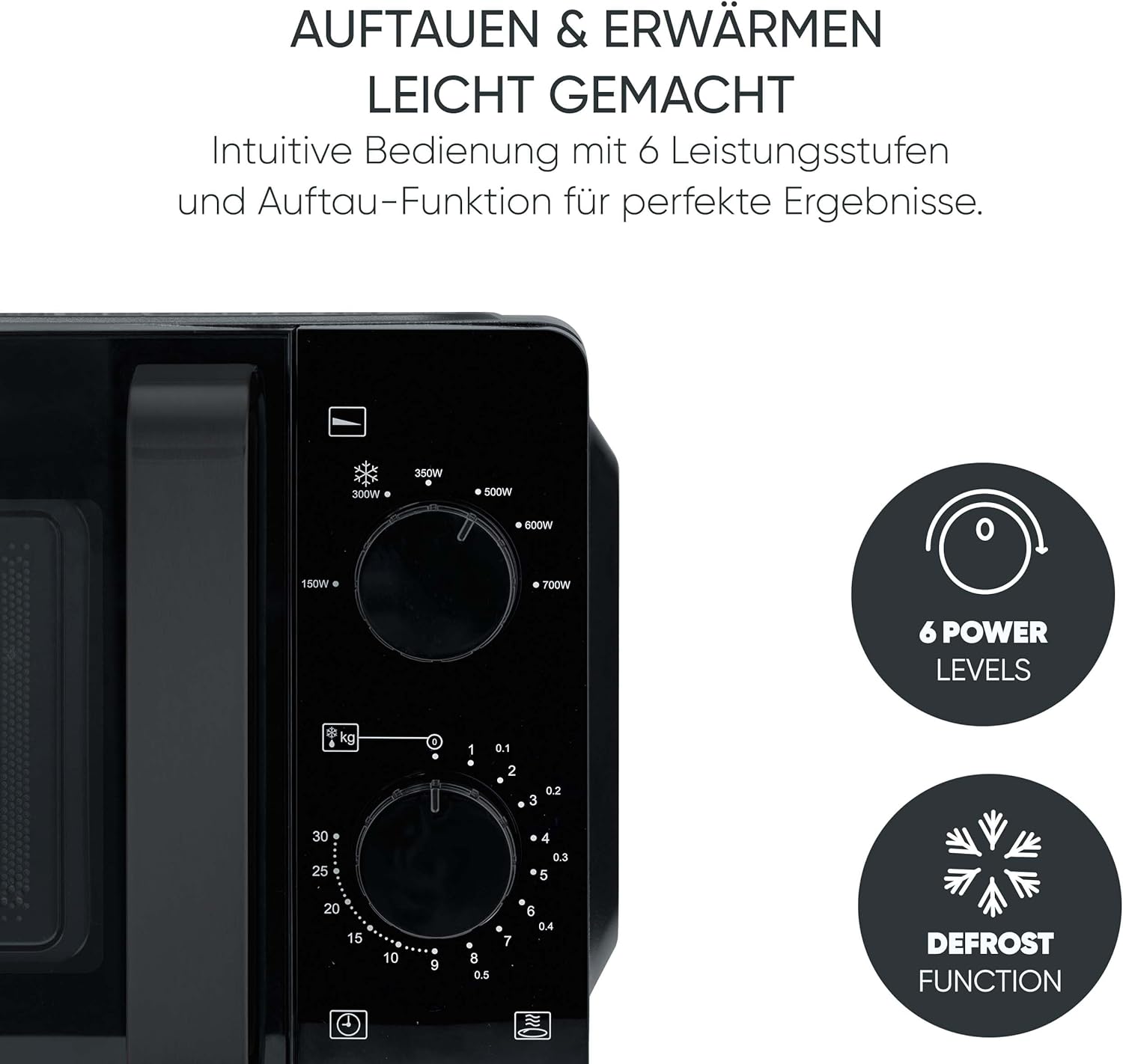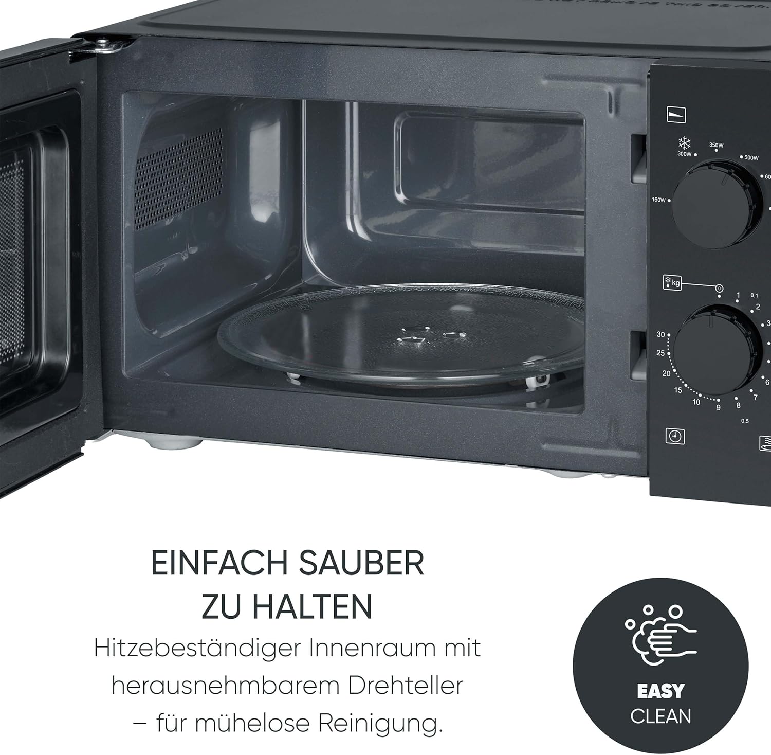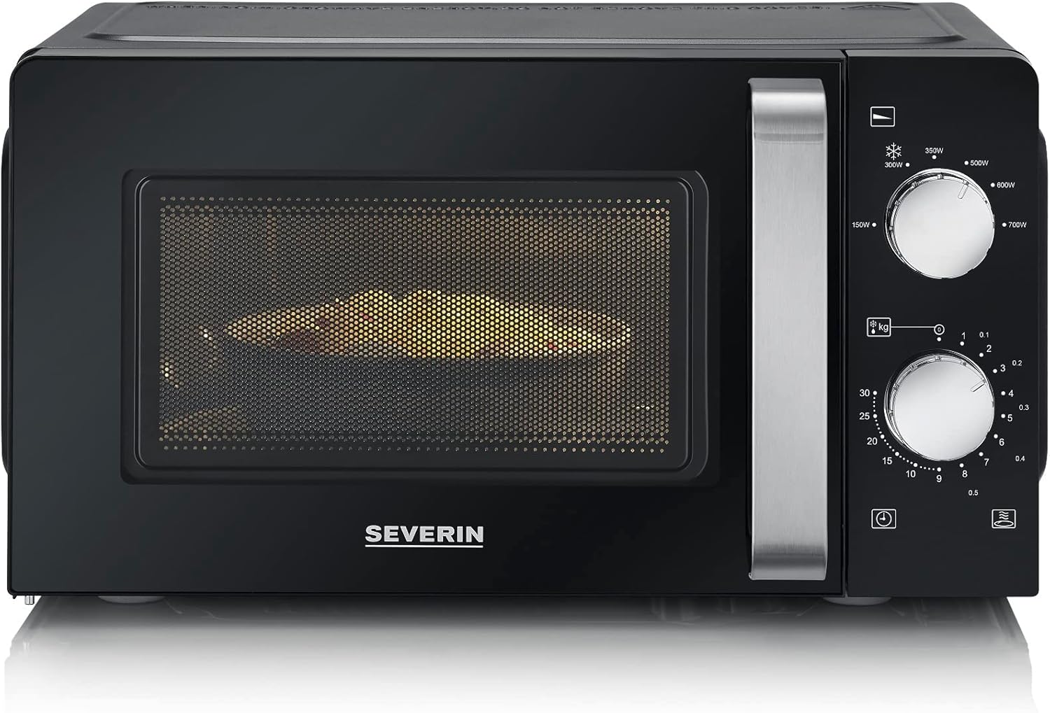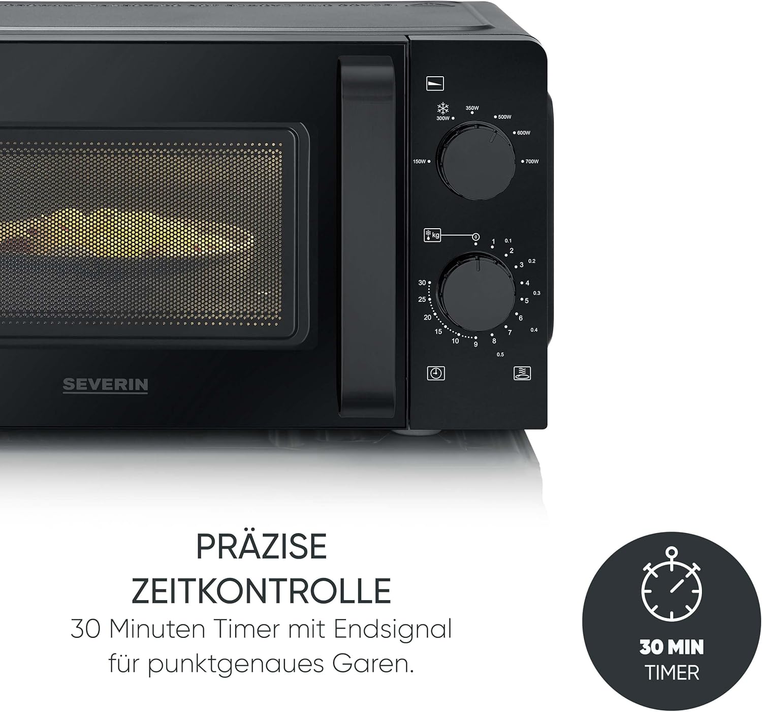 • Детайли - SEVERIN Solo микровълнова фурна за размразяване и затопляне на храна (17 л готварско пространство), класически уред с настройка на мощността и температурата, макс. 700 W, черна, модел № 7886