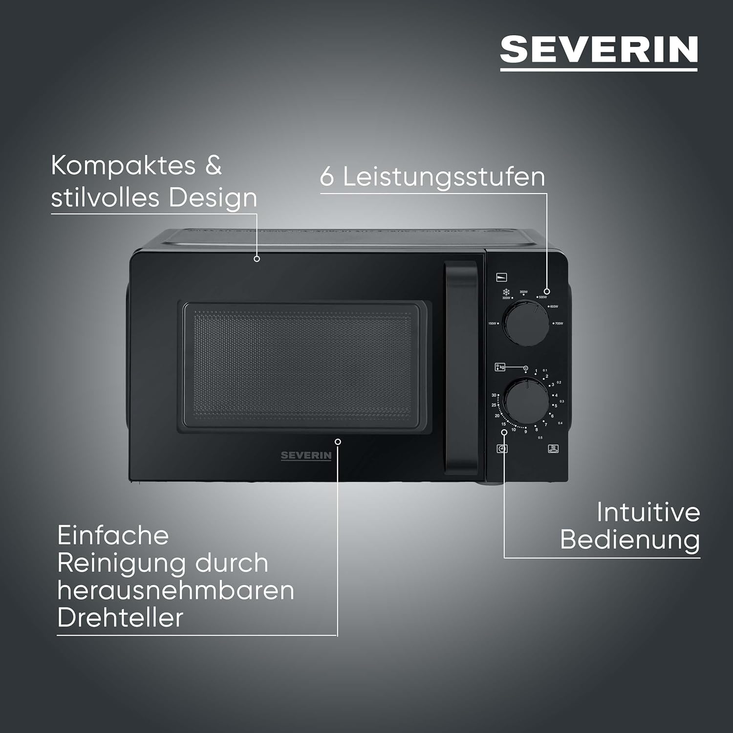 SEVERIN MW 9180 Solo, за размразяване и затопляне, микровълнова фурна с въртяща се поставка и 6 нива на мощност, дизайн - черен комплект, 700 W, капацитет 19 л