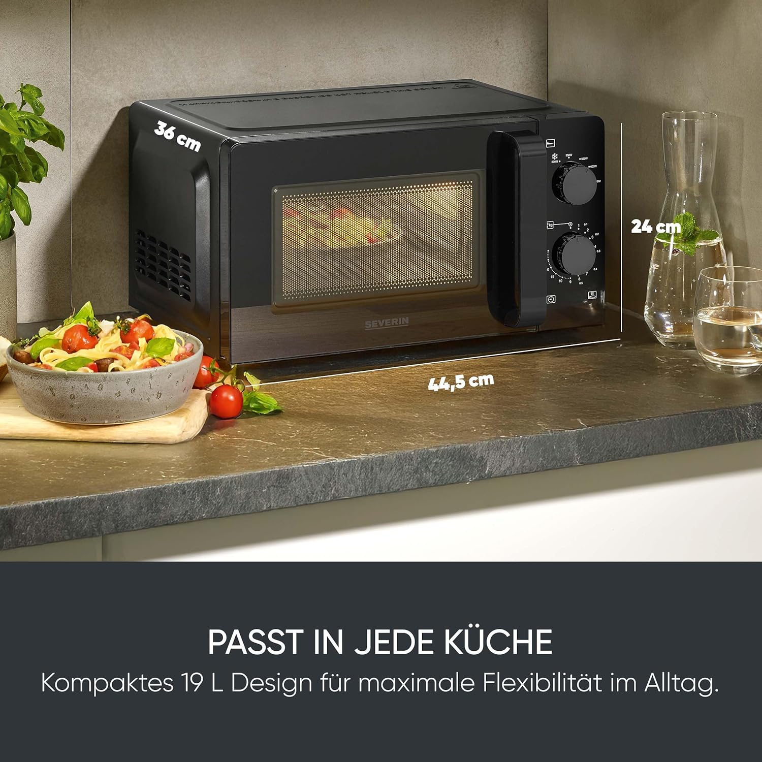 • Практична микровълнова фурна - Микровълновата фурна SEVERIN е подходяща за размразяване и затопляне на храна и е особено лесна и интуитивна за употреба благодарение на 2 копчета.