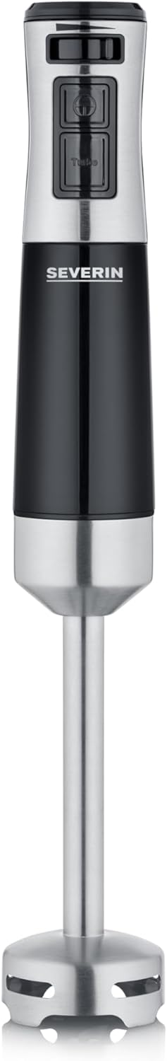 SEVERIN SM 3775 Безжичен ръчен блендер с Premium Set, подвижна смесителна пръчка, с пюре, мулти-чопър, контейнер за смесване, преса за картофи и бъркалка, черна/матирана неръждаема стомана