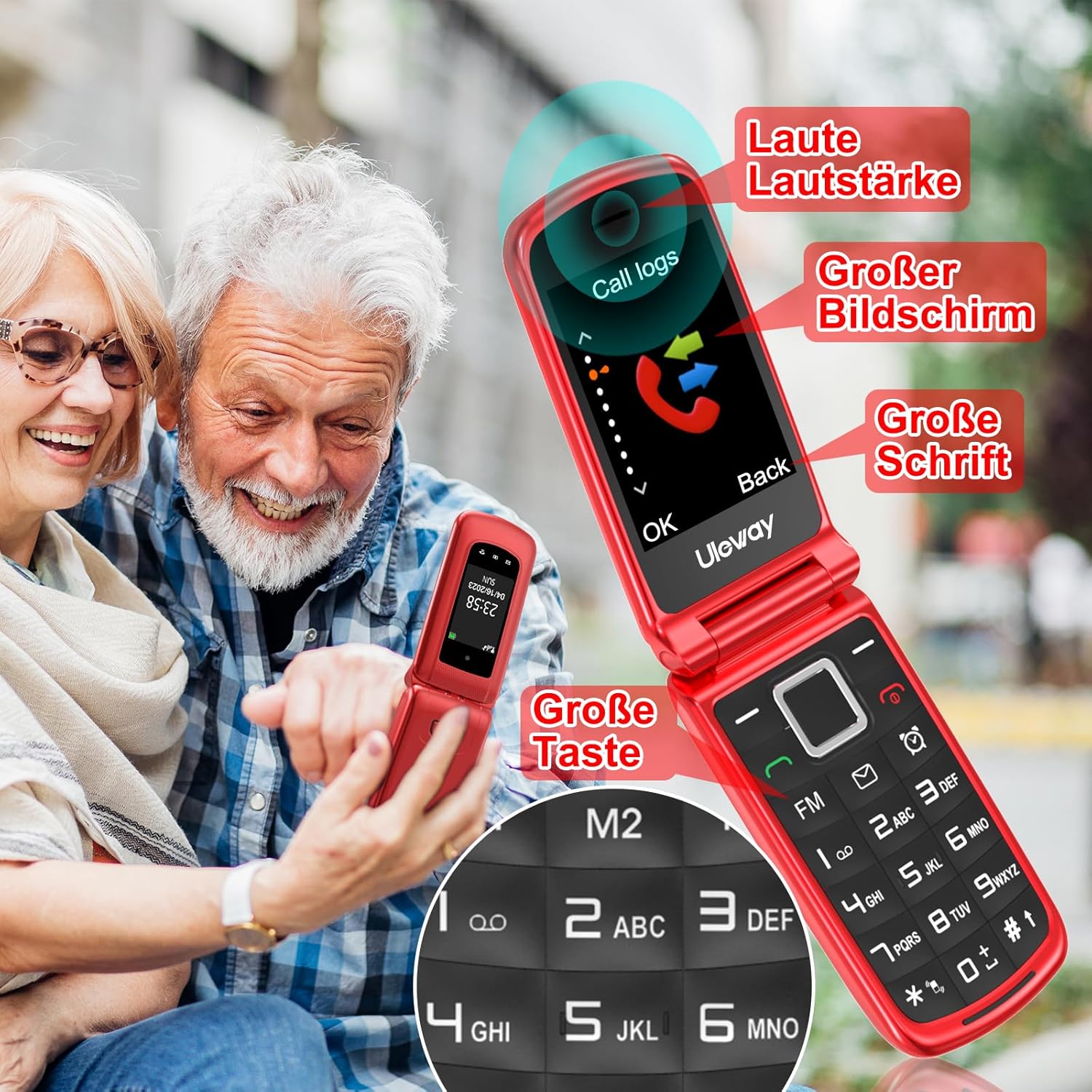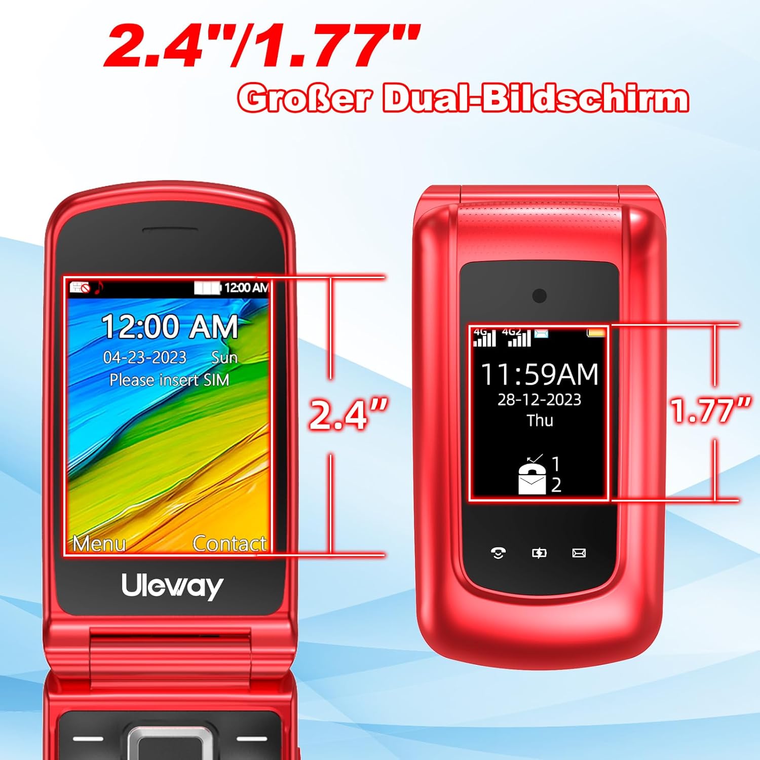 Senior-friendly 2.8 inch + 1.77 inch dual large screen mobile phones, really large screen, large font and large symbol, it is very easy for the elderly to read!