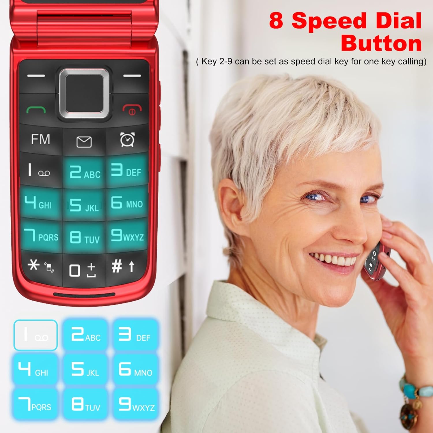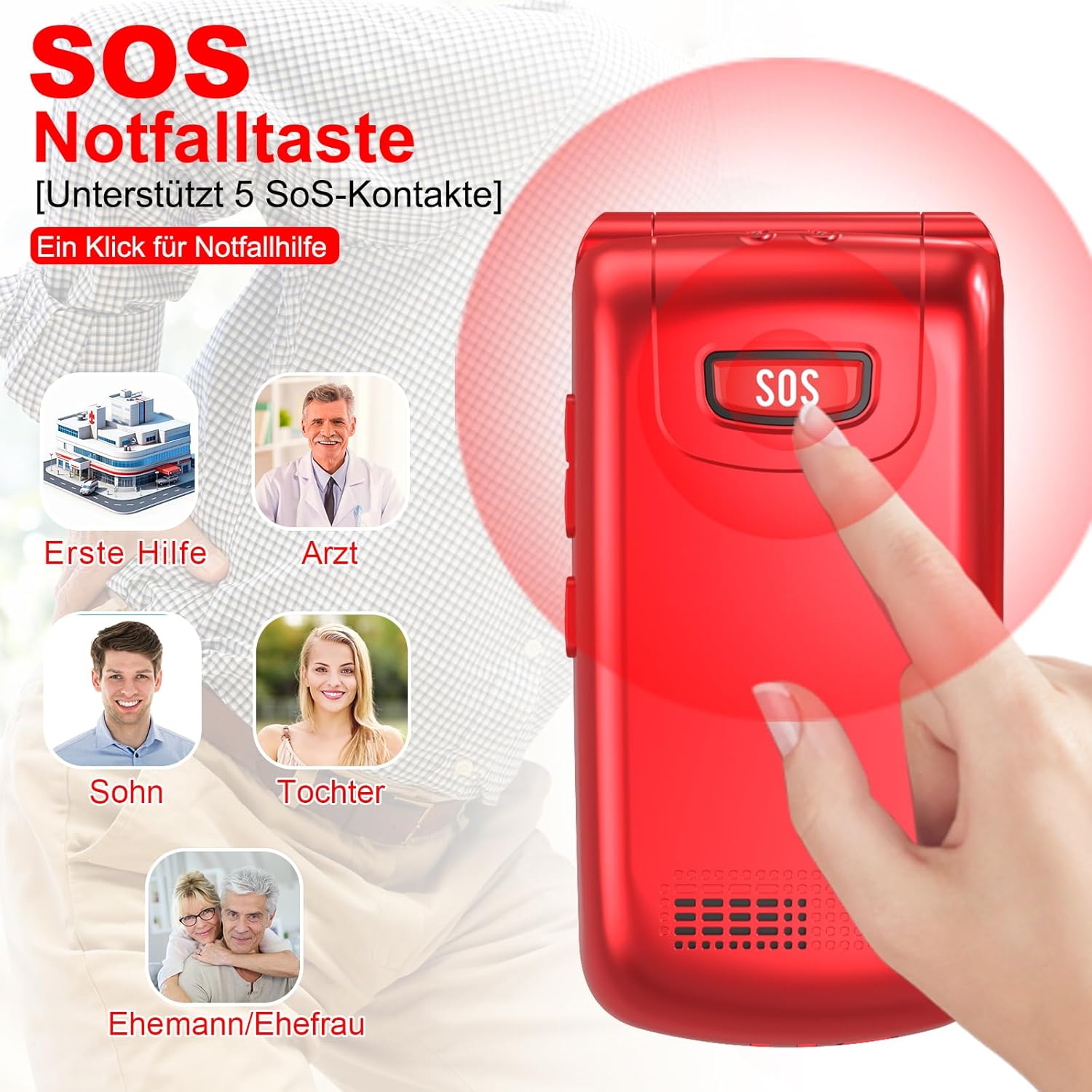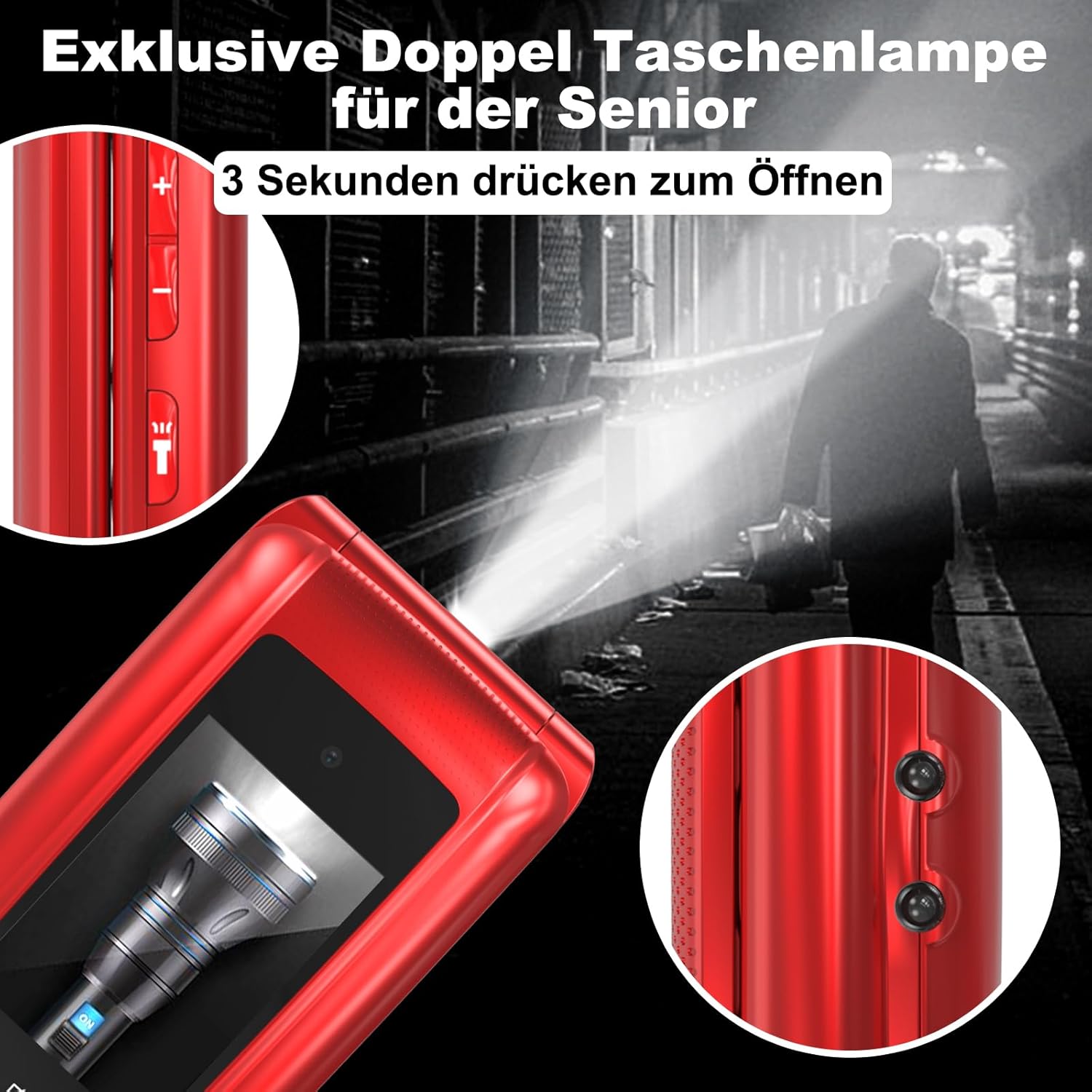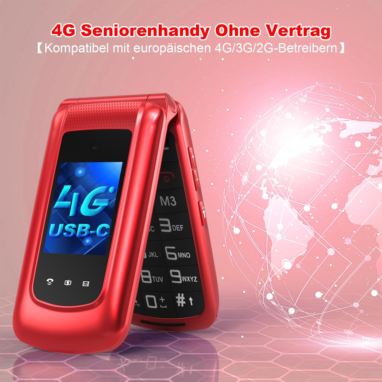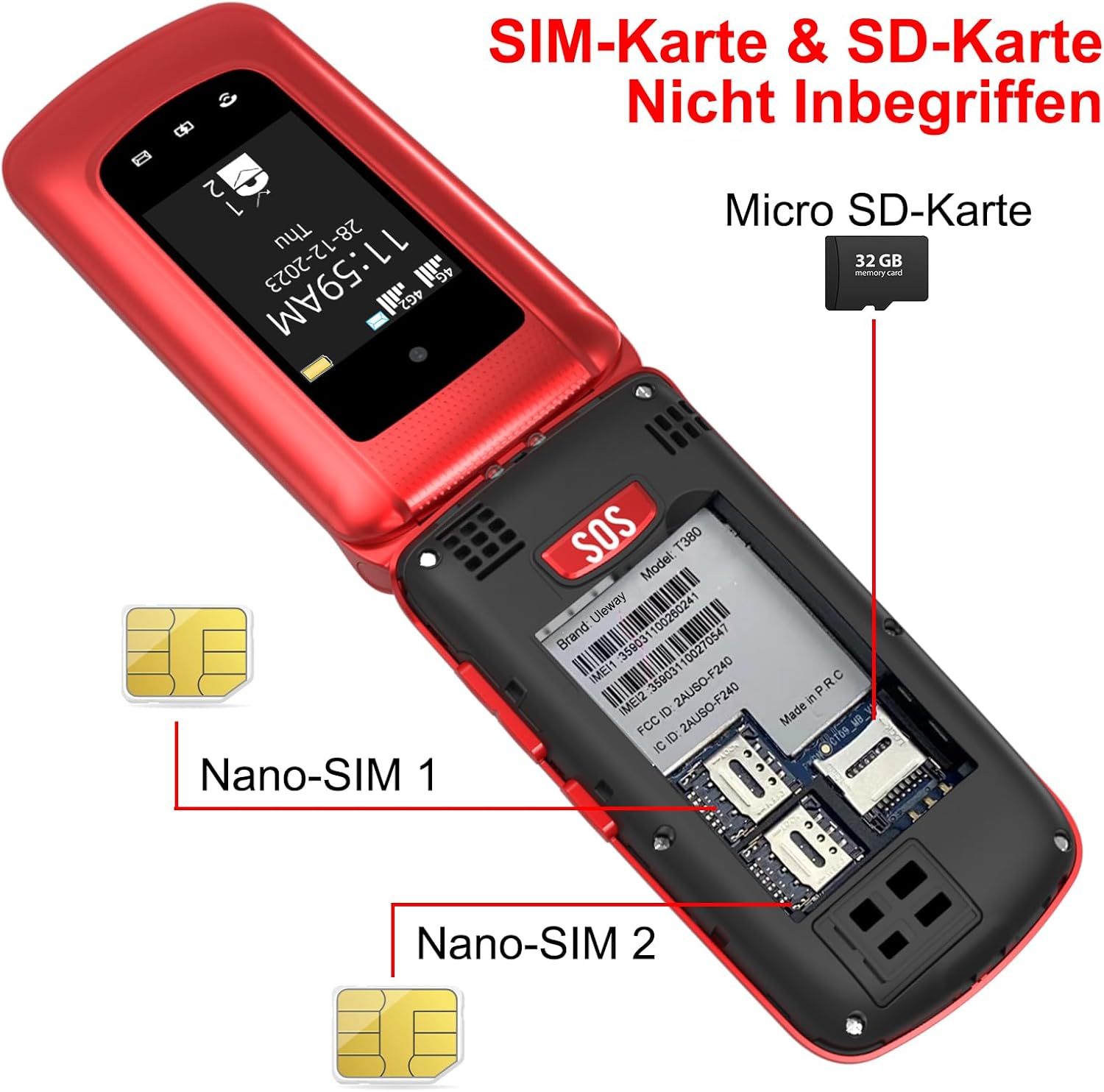 • 4G мобилен телефон за възрастни хора с две SIM карти и двоен LCD екран: този мобилен телефон за възрастни хора с разгъваем капак е идеален за възрастни хора, поддържа две 4G SIM карти и предлага безпроблемна комуникация без договор. С 4G VoLTE, 3G WCDMA и 2G/GSM покритие, получавате по-стабилен и по-широк обхват на сигнала. Големият външен дисплей показва дата, час, контакти и ниво на батерията. Лесен за употреба с големи бутони и ясна сила на звука. Идеален за възрастни хора, деца и потребители с увредено зрение.
