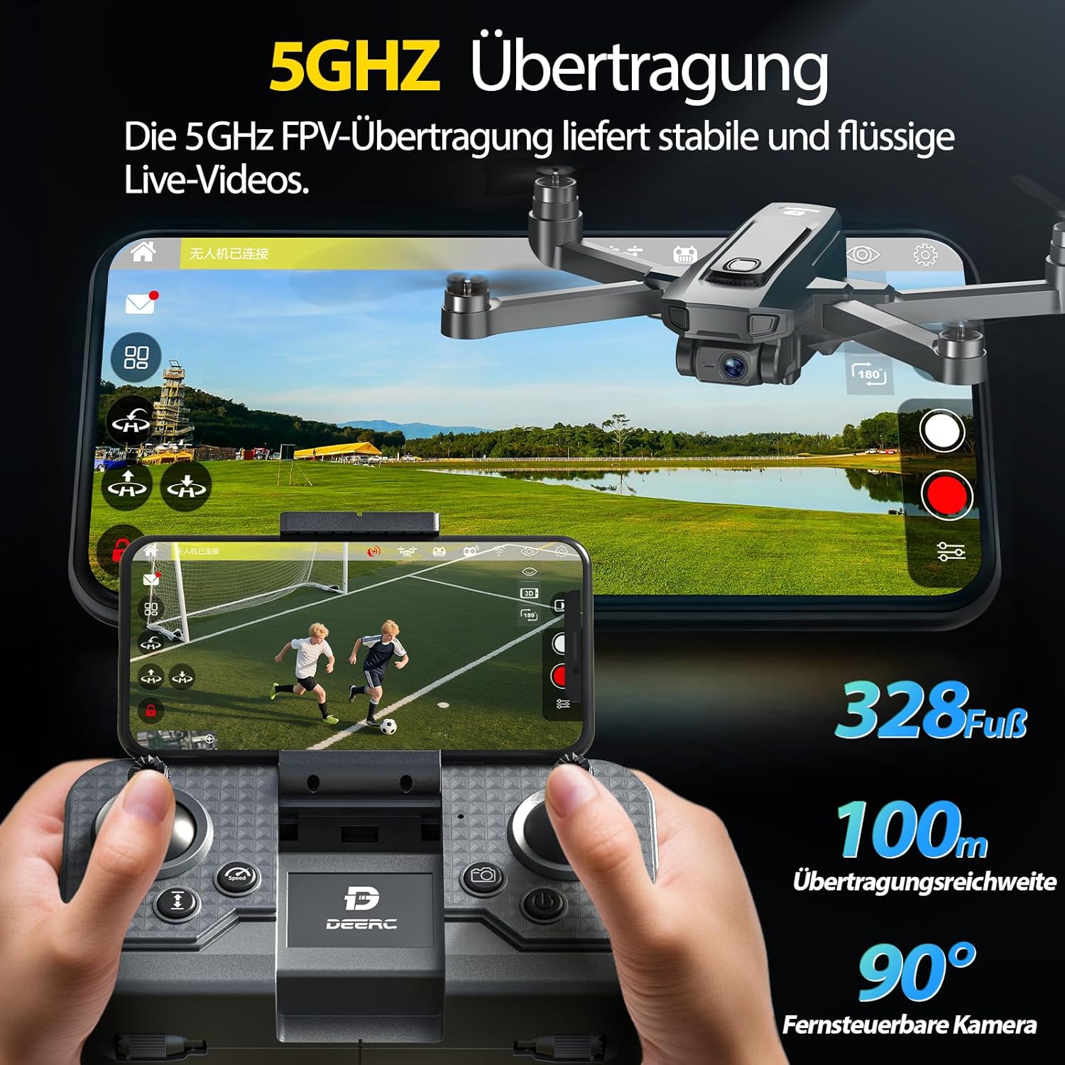 Сгъваем дрон DEERC D25 с 1080P камера, RC квадрокоптер с 5G FPV, 40 минути полетно време, оптичен поток, безчетков мотор, 360° завъртане, 3 скорости, подарък за начинаещи и младежи