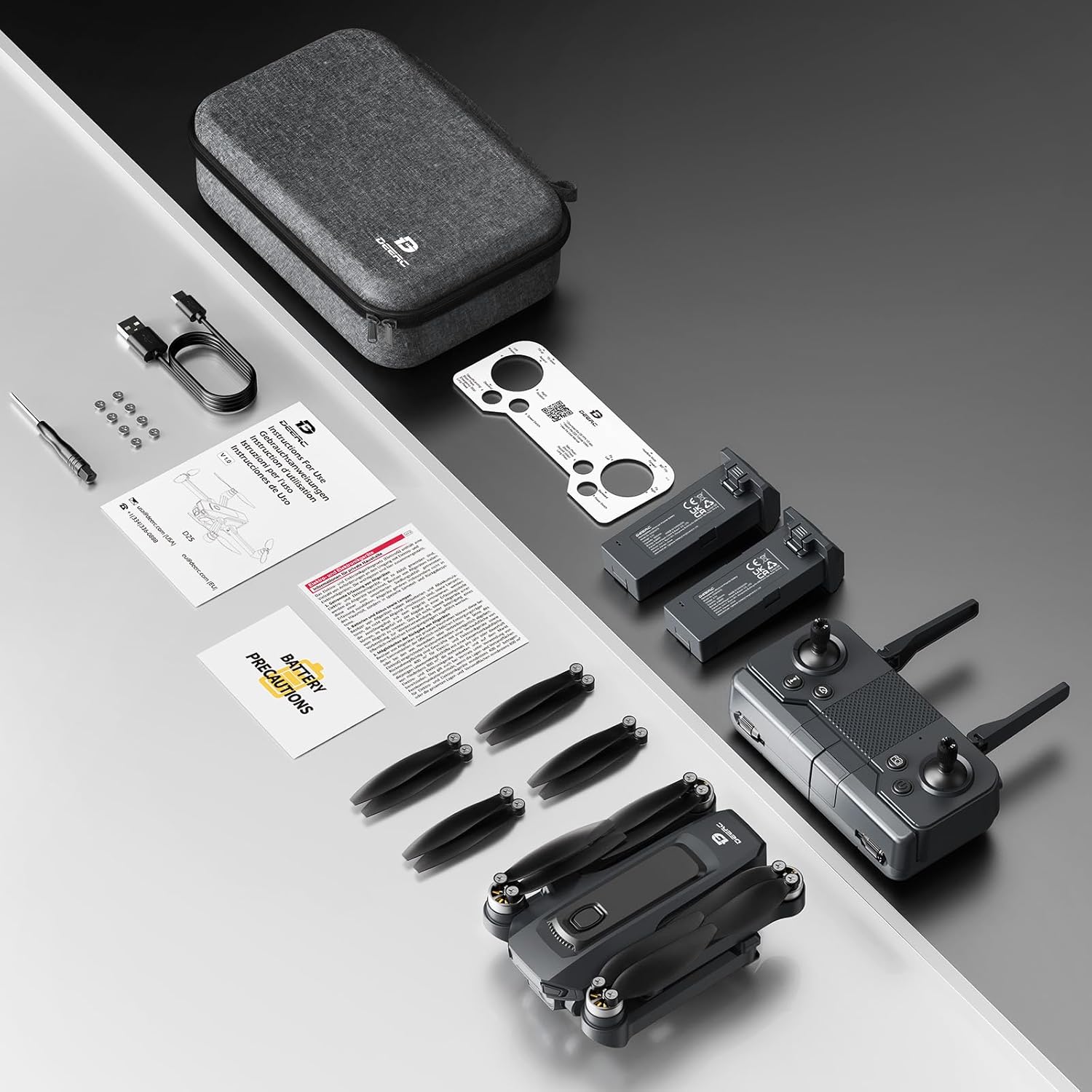 • Спирачен двигател и дълъг поток: Мощен, безчетков двигател с ниско ниво на шум за по-дълъг живот и по-добра ефективност. Две модулни батерии позволяват до 40 минути време за полет. Сгъваемият дизайн го прави компактен и лесен за носене.