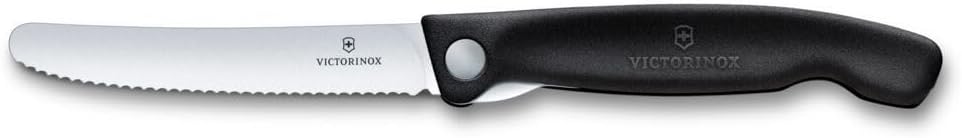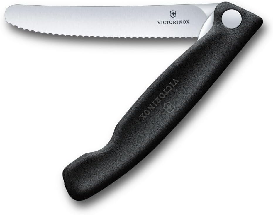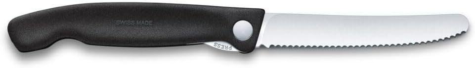 Сгъваем нож за пикник Victorinox Swiss Classic за туризъм, плодове, зеленчуци, хлебчета, наденица, с назъбен ръб, изключително остър, черен
