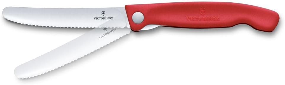 Сгъваем нож за пикник Victorinox Swiss Classic за туризъм, плодове, зеленчуци, хлебчета, наденица, с назъбен ръб, изключително остър, червен