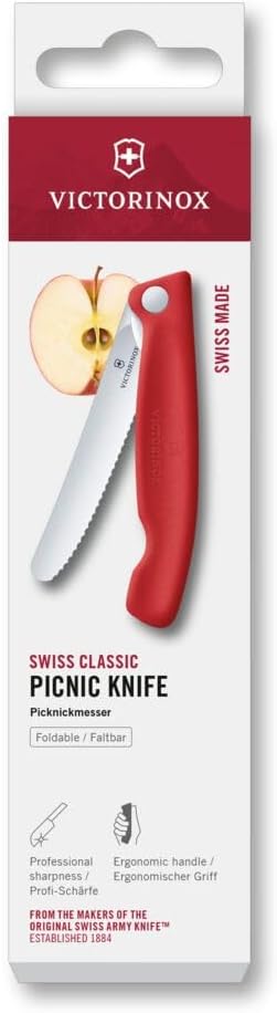 • ШВЕЙЦАРСКИ КЛАСИЧЕСКИ НОЖ ЗА ПИКНИК: Този универсален, назъбен сгъваем нож може да се използва за рязане и белене на плодове и зеленчуци в кухнята, както и за бране на гъби в гората.