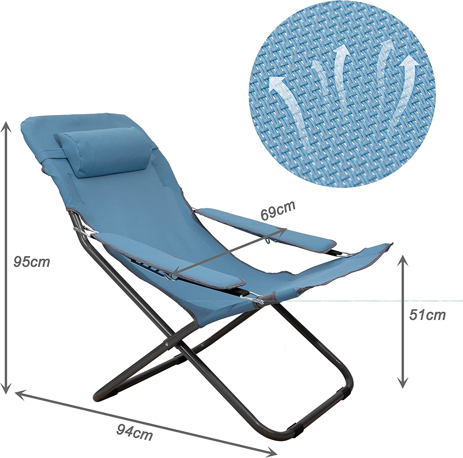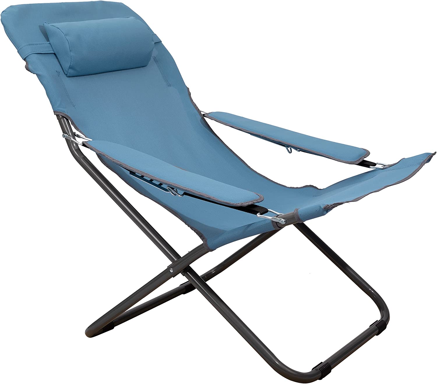 Сгъваем стол за къмпинг HomeCall, Издържа до 120кг, Регулируема облегалка, Дишаща материя, Син