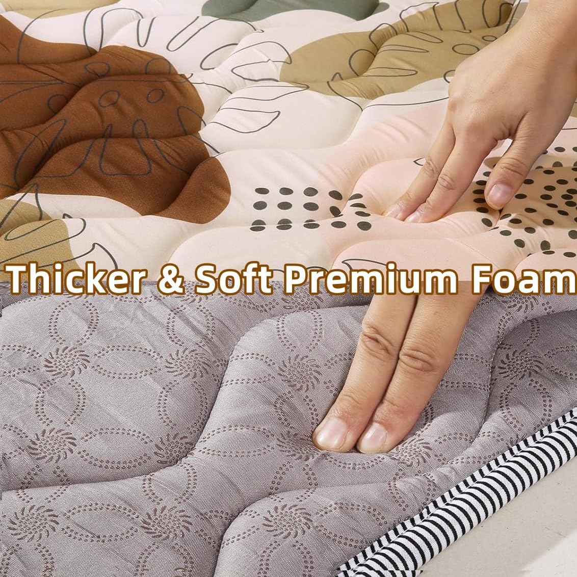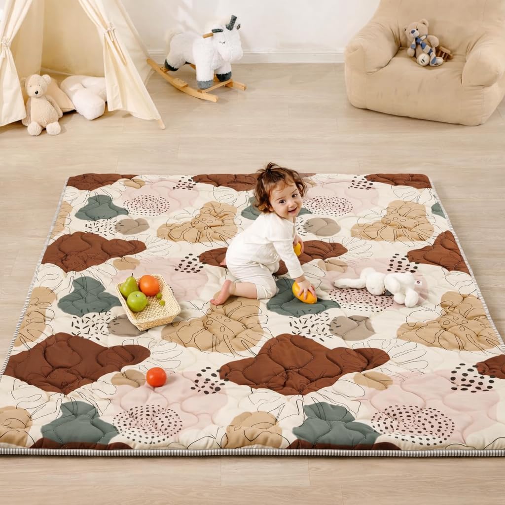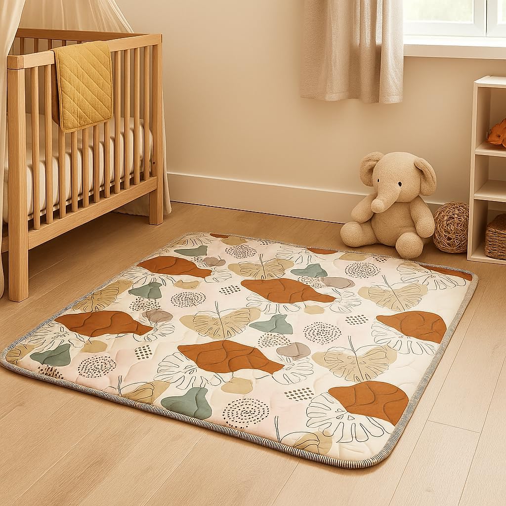 Сгъваема бебешка постелка за пълзене Lambluefly, удебелено одеяло за пълзене за бебета 127x127 см, противоплъзгаща се постелка, може да се пере в пералня, сгъваема бебешка постелка за игра, бебешка постелка за игра за кошари, бохемски дизайн