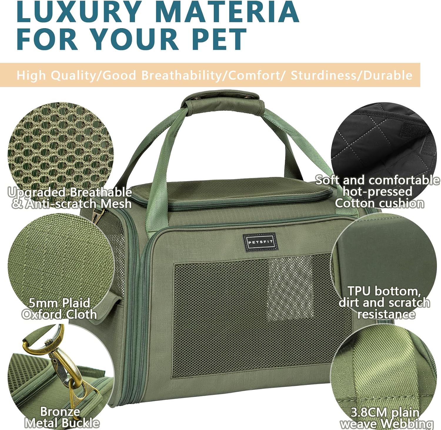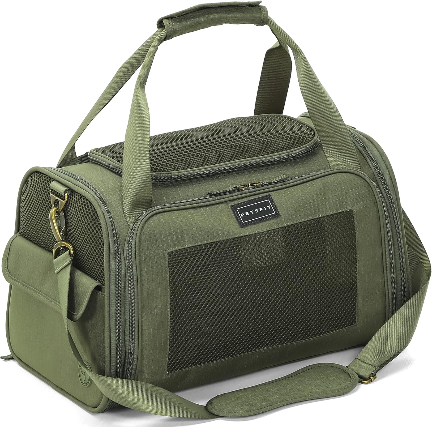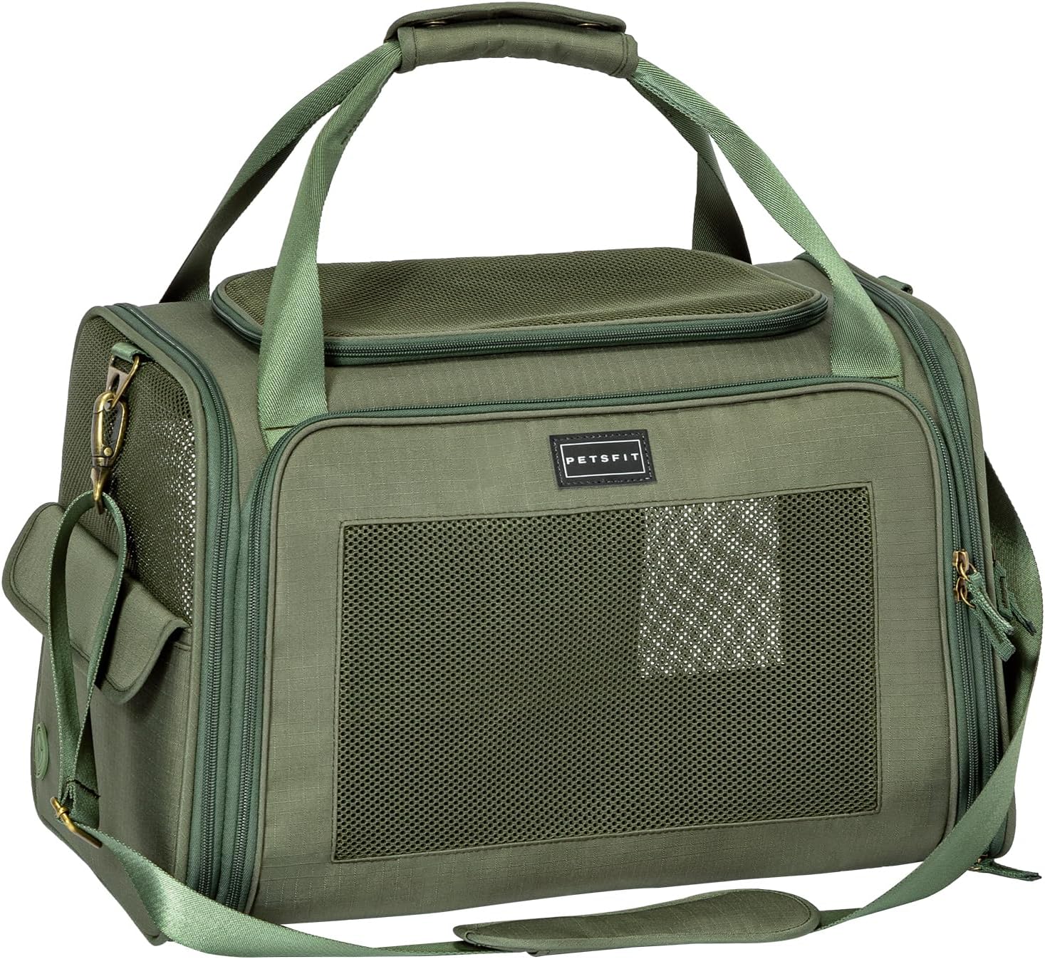 Сгъваема чанта за транспортиране на кучета и котки Petsfit за малки кучета с регулируема презрамка и мека разтегателна възглавница, M/маслинено зелена