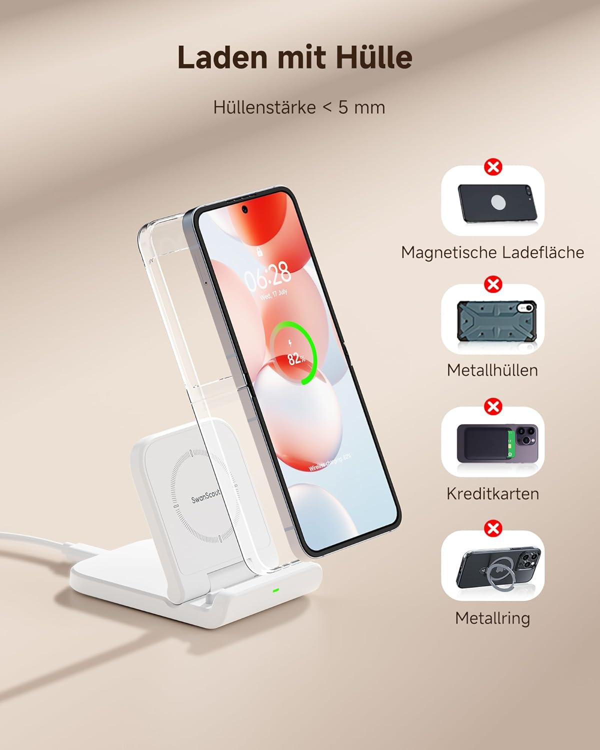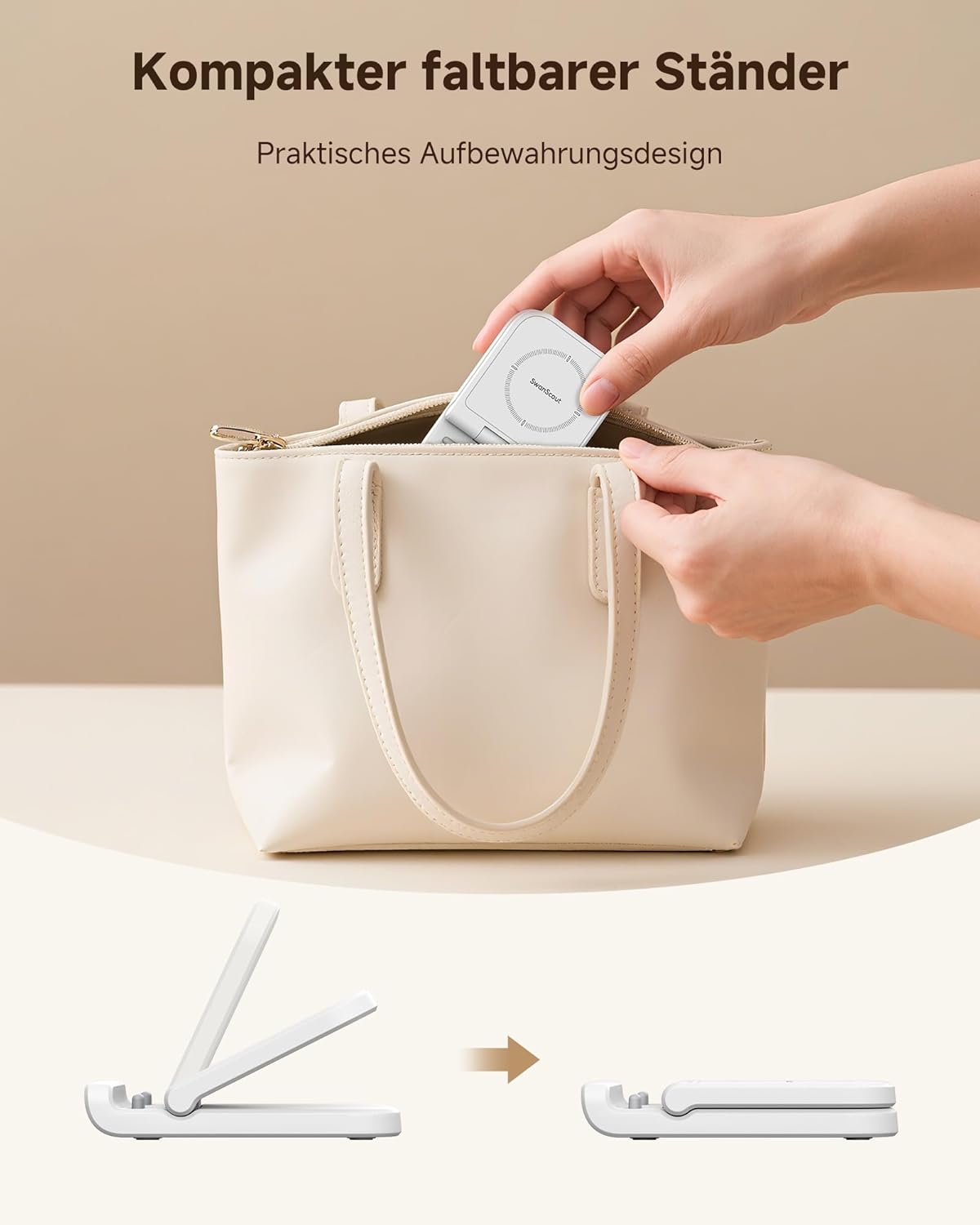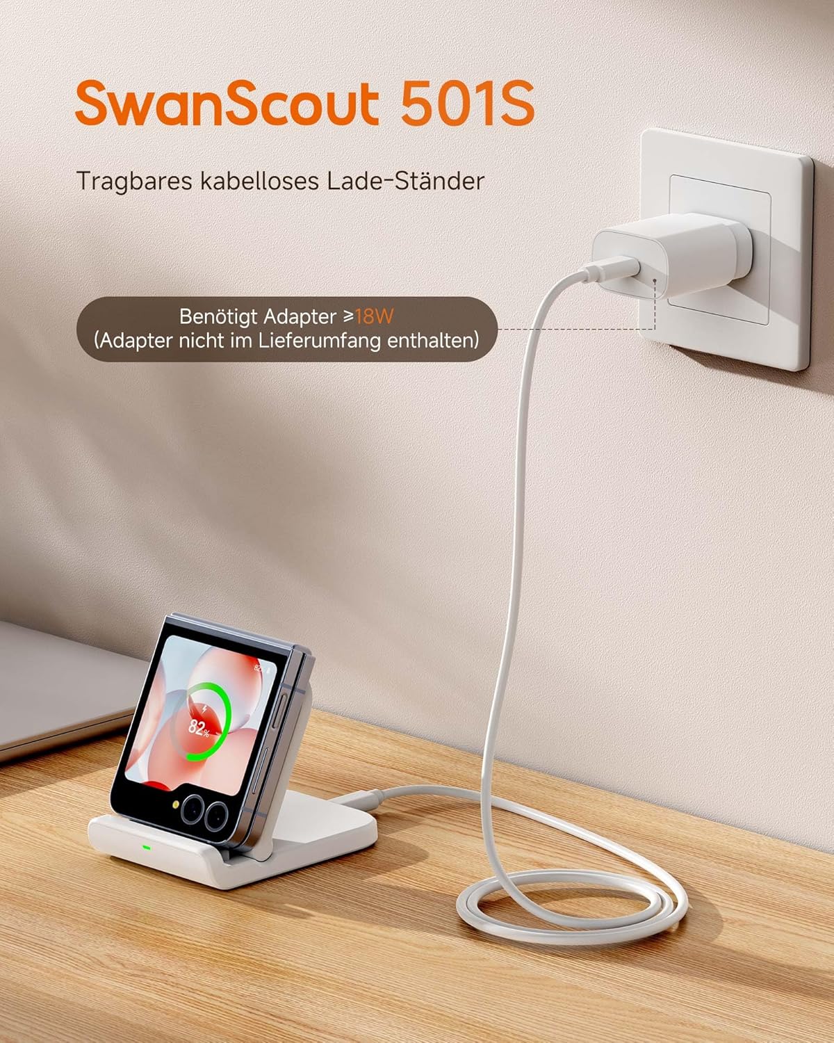 Сгъваема индуктивна зарядна станция SwanScout за Samsung Galaxy Z Flip 7/7 FE 6/5/4/3 & Moto Razr 60/50/40 (Ultra), SwanScout 501S (без адаптер) (бяла)