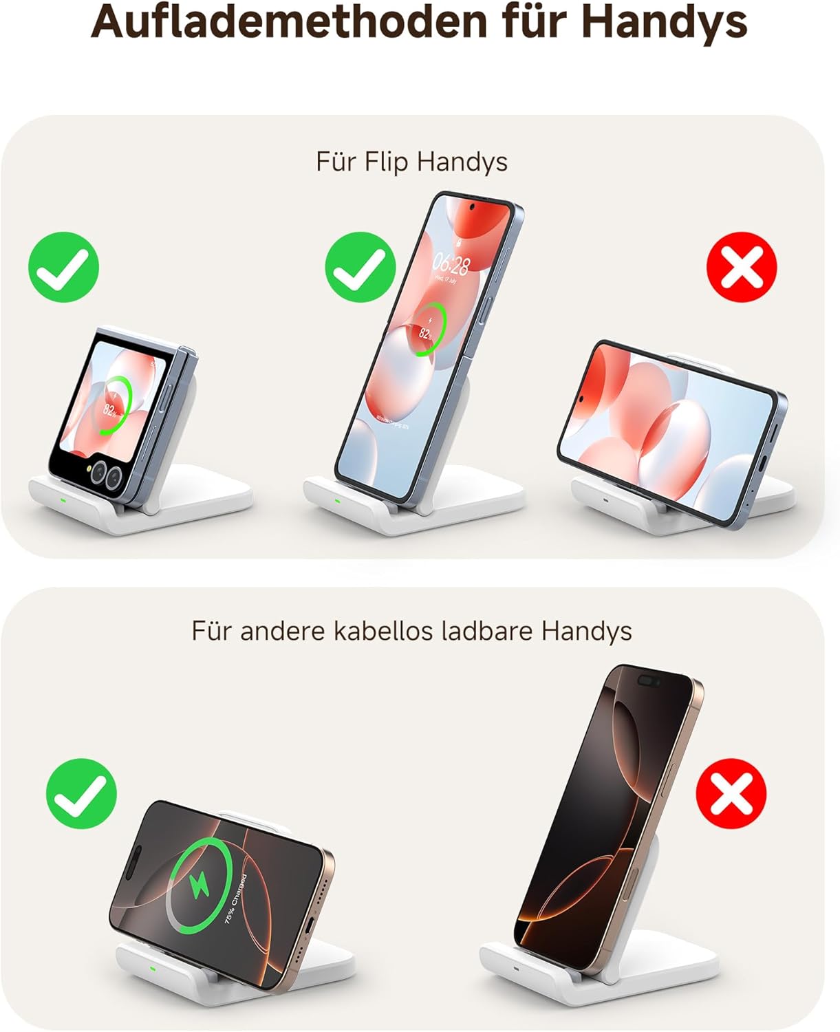 • ПРОФЕСИОНАЛНА ЗАРЯДНА СТАНЦИЯ Z FLIP Насладете се на свободата на безжичното зареждане без досадните заплетени кабели. Напълно съвместима със Samsung Galaxy Z Flip 7/7 FE/6/5/4/3 и Motorola RAZR 60 Ultra/60/50 Ultra/50/40/40 Ultra.
