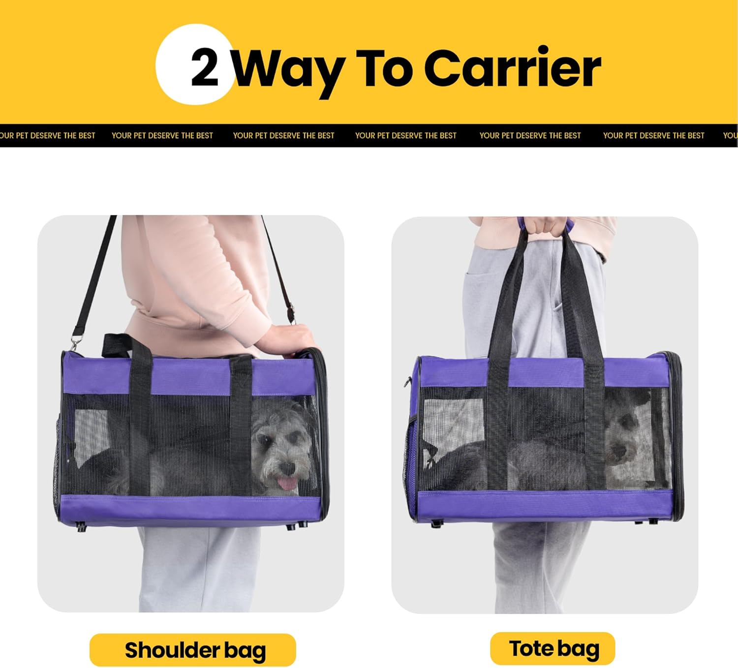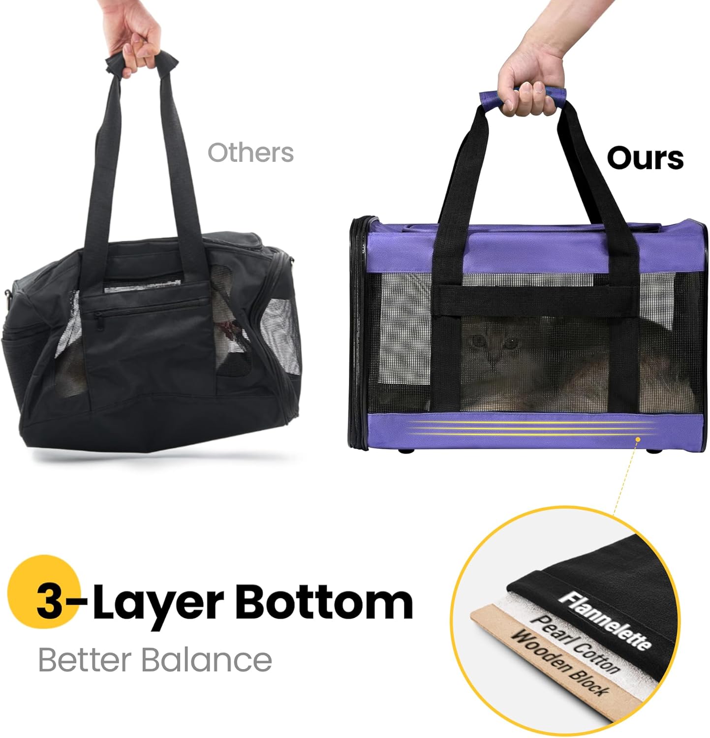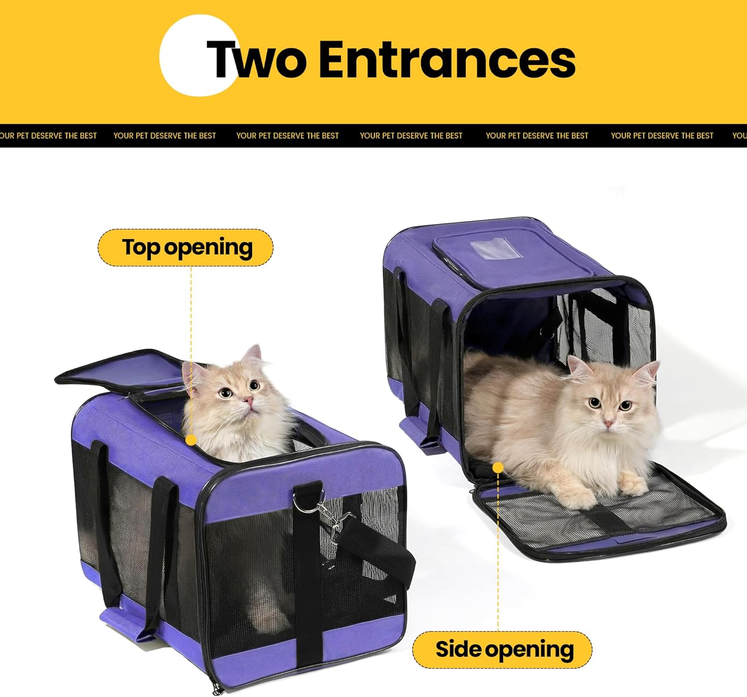 • Преносима и сгъваема: тази кутия за транспортиране на котки може да се носи като чанта или чанта през рамо с подплатената презрамка или дръжките тип „примка“, като презрамката е регулируема. Сгъваемият дизайн позволява чантата да се сгъва компактно, така че да може лесно да се съхранява.