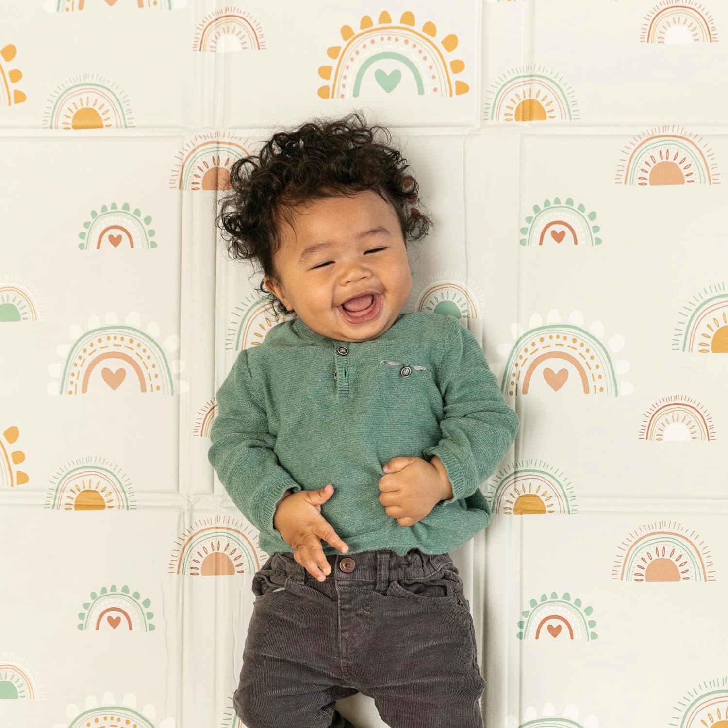 Сгъваема мека постелка за игра Infantino, изключително голяма, лесно преносима, бебешка играчка, сгъваеми страни, неплъзгаща се постелка за игра за бебета и малки деца, дъги