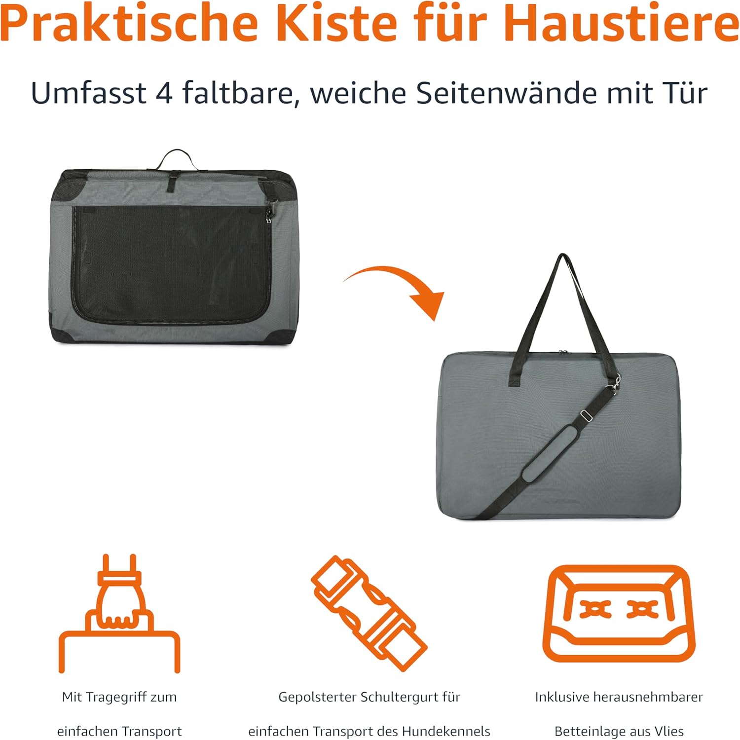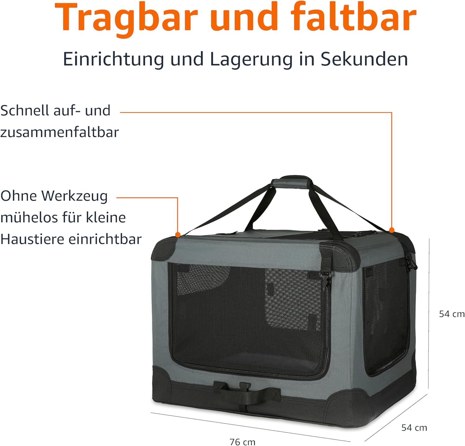 • Горен отвор за слънчева светлина и циркулация на въздуха, предни и странични врати с ципове за допълнителна сигурност. Включени са каишки за навиване и закрепване на платнените врати, когато преносимата клетка за кучета е оставена отворена.