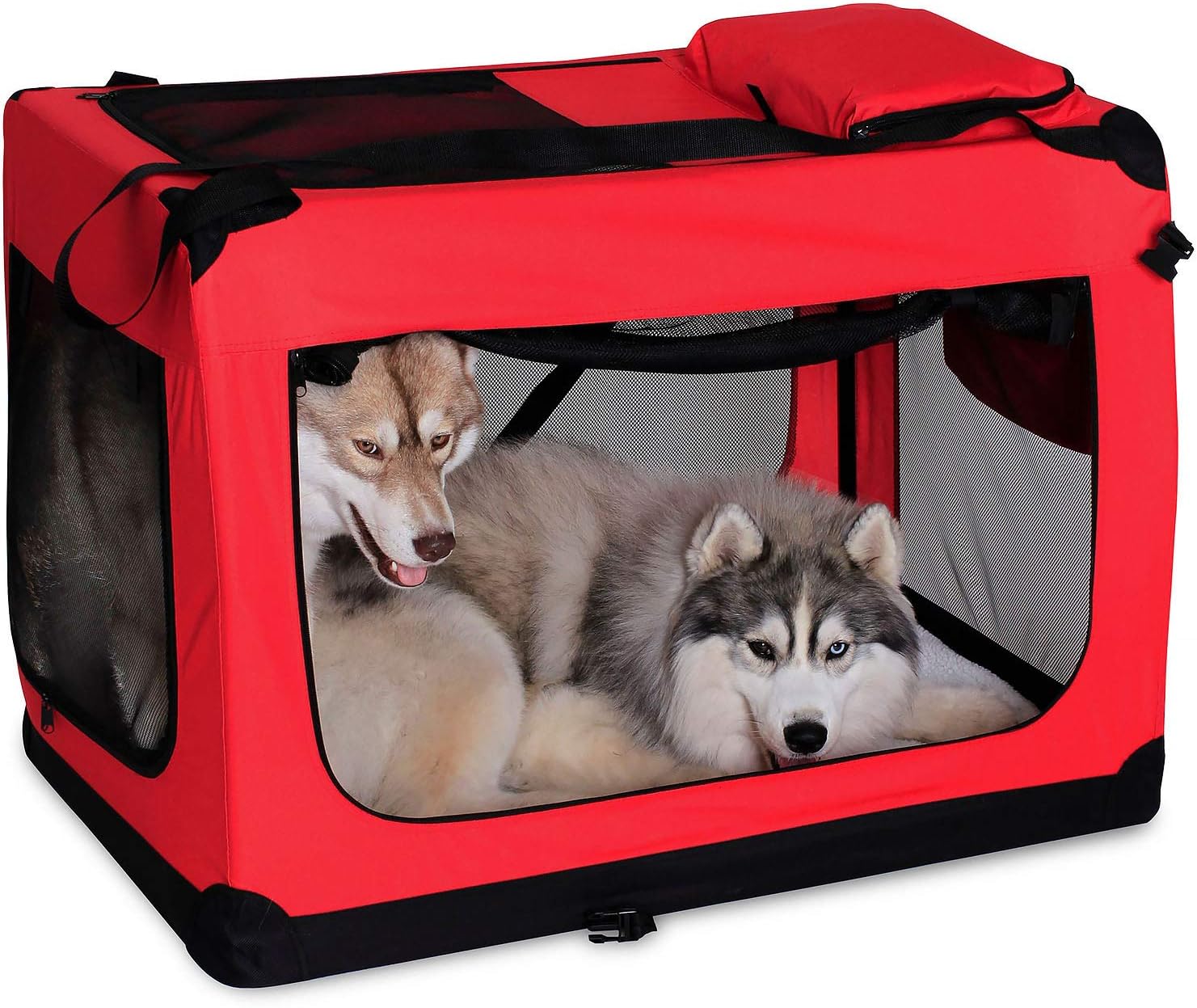Тази практична и здрава кутия за пътуване за домашни любимци е подходяща за транспортиране на кучета, котки или други малки животни. Щедрите вентилационни повърхности осигуряват оптимална циркулация на въздуха. Кошницата за транспортиране на кучета може да се отваря отпред и отгоре с цип. Оборудвана с мека възглавница, тази кутия за кучета е подходяща и за убежище. Ако кутията за транспортиране на котки не е необходима, тя може да се сгъне с няколко прости стъпки и лесно да се прибере.