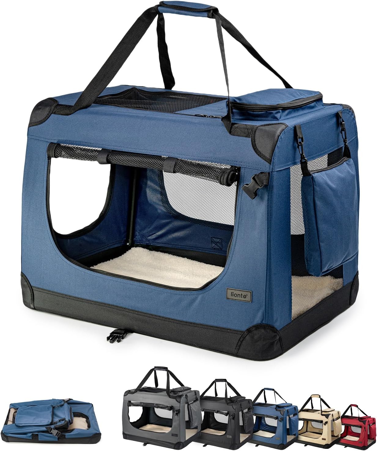 Тази практична и здрава кутия за пътуване за домашни любимци е подходяща за транспортиране на кучета, котки или други малки животни. Щедрите вентилационни повърхности осигуряват оптимална циркулация на въздуха. Кошницата за транспортиране на кучета може да се отваря отпред и отгоре с цип. Оборудвана с мека възглавница, тази кутия за кучета е подходяща и за убежище. Ако кутията за транспортиране на котки не е необходима, тя може да се сгъне с няколко прости стъпки и лесно да се прибере.