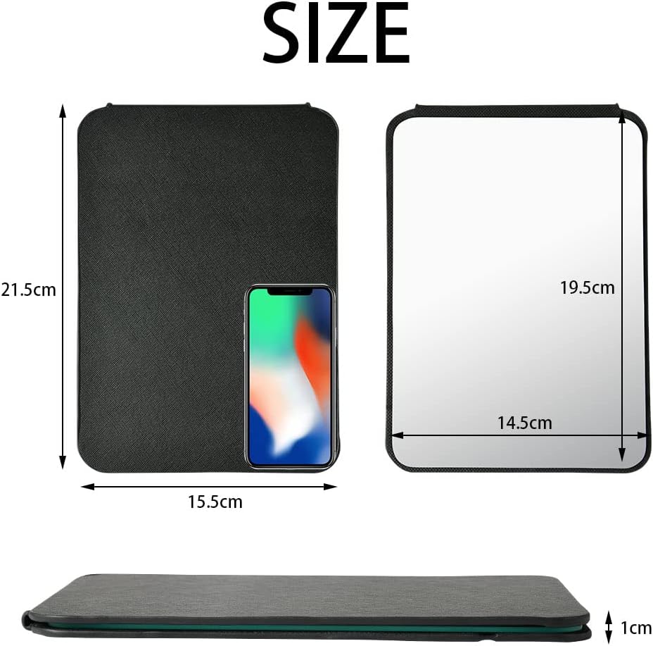 • Практичен дизайн: Изработен от PU кожа и HD стъкло. Минималистичен сгъваем дизайн, но много стилен. Размер: приблизително 20,5x15 см. Прозрачен и достатъчно голям, за да се вижда цялото лице.