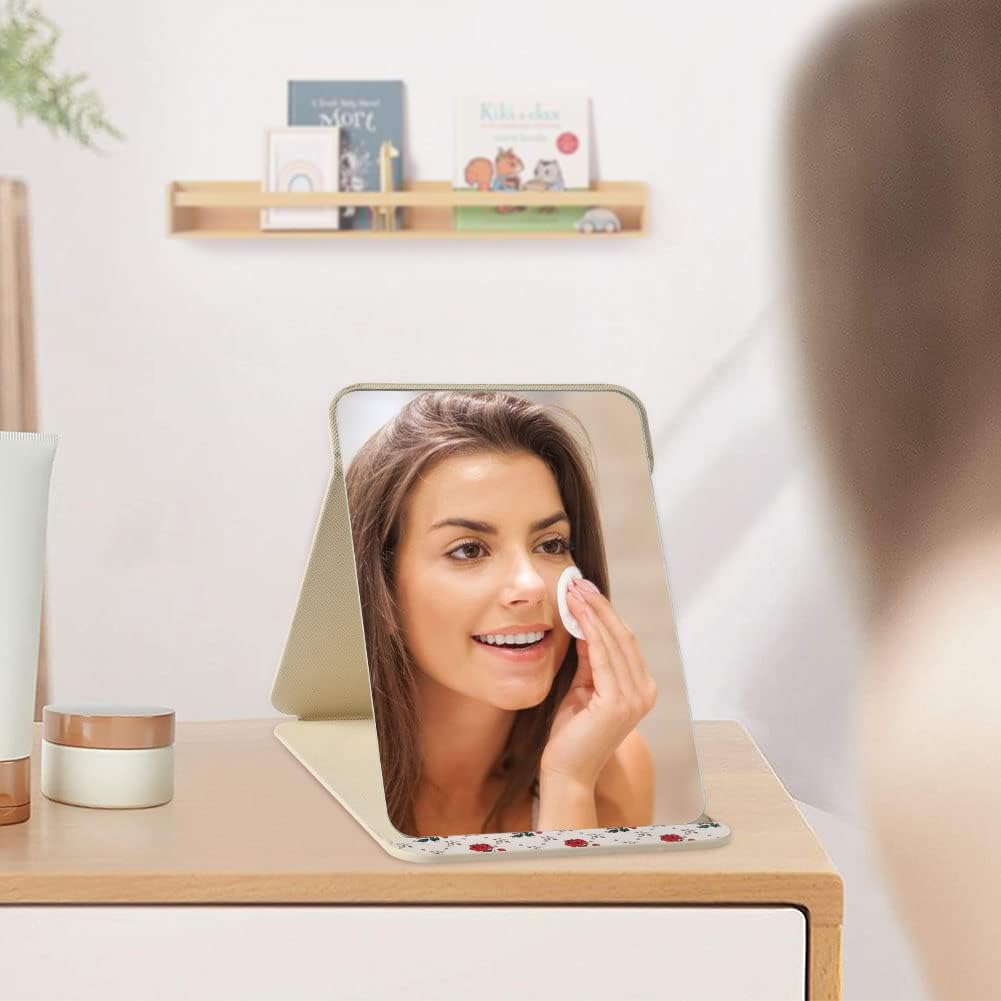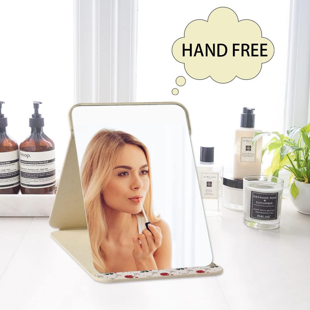 • Многофункционално: Това огледало за пътуване се предлага с регулируем държач. Сгъваемият дизайн го прави лесно за транспортиране и поддръжка. Може да стои стабилно на различни плотове, идеално за бани, спални, скринове, бюра, маси и др.