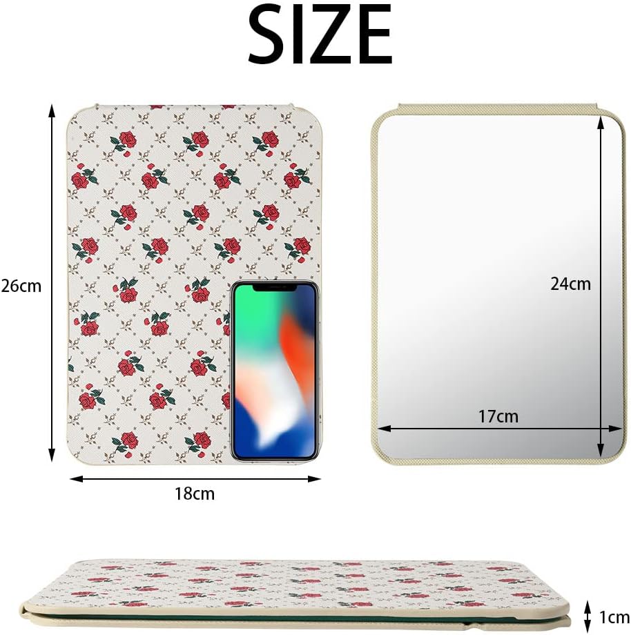 • Практичен дизайн: Изработен от PU кожа и HD стъкло. Минималистичен сгъваем дизайн, но много стилен. Размер: приблизително 20,5x15 см. Прозрачен и достатъчно голям, за да се вижда цялото лице.