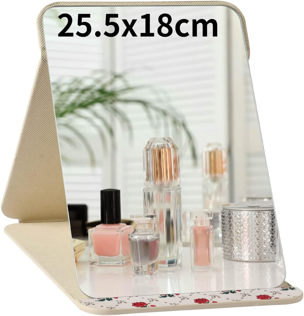 Сгъваемо огледало за пътуване OSDUE, сгъваем грим, преносимо козметично огледало, сгъваемо огледало за пътуване за настолна, ръчна, домашна и пътна употреба (изключително голямо - 25,5 x 18 см)
