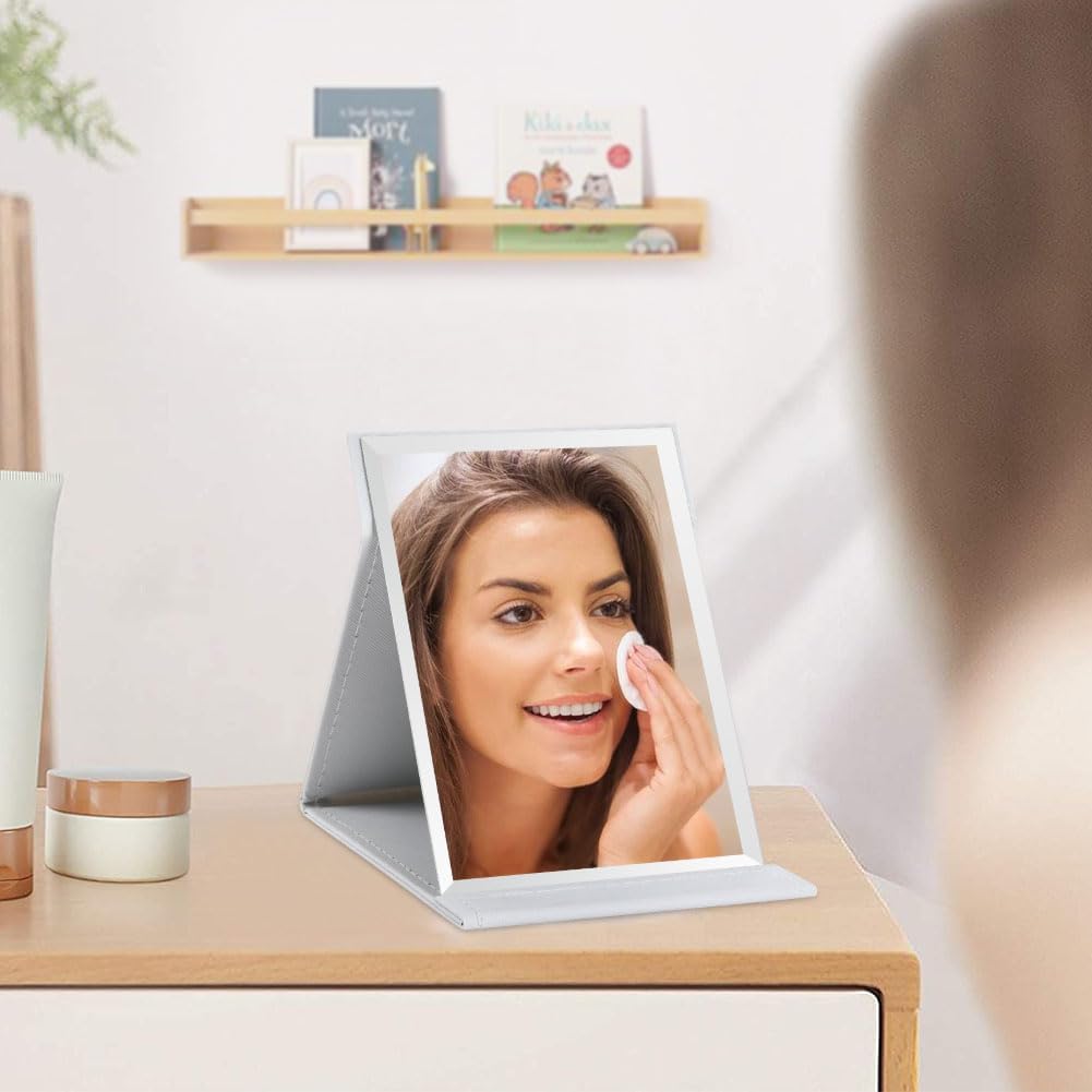 Сгъваемо огледало за пътуване OSDUE, сгъваем грим, преносимо козметично огледало, сгъваемо огледало за пътуване за настолна, ръчна употреба, домашна и пътна употреба (бяло, 12,5 x 17 см)