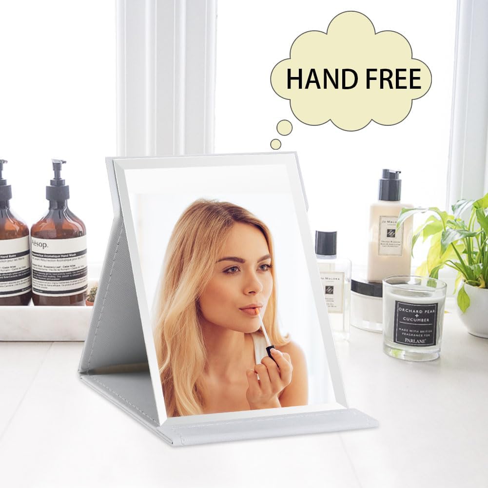 • Многофункционално: Това огледало за пътуване се предлага с регулируем държач. Сгъваемият дизайн го прави лесно за транспортиране и поддръжка. Може да стои стабилно на различни плотове, идеално за бани, спални, скринове, бюра, маси и др.