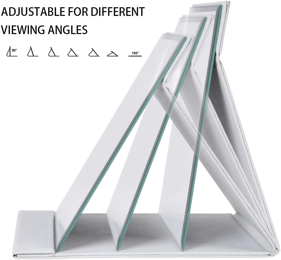 • Практичен дизайн: Изработен от PU кожа и HD стъкло. Минималистичен сгъваем дизайн, но много стилен. Размер: приблизително 20,5x15 см. Прозрачен и достатъчно голям, за да се вижда цялото лице.