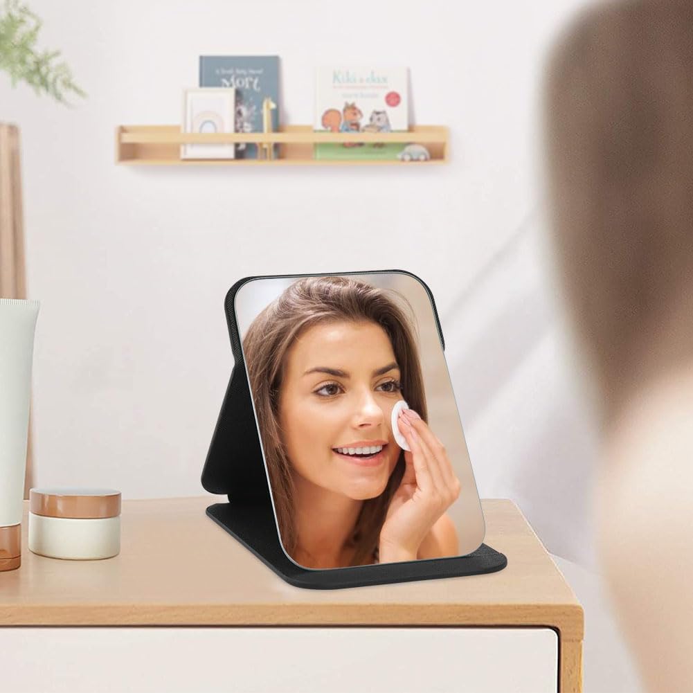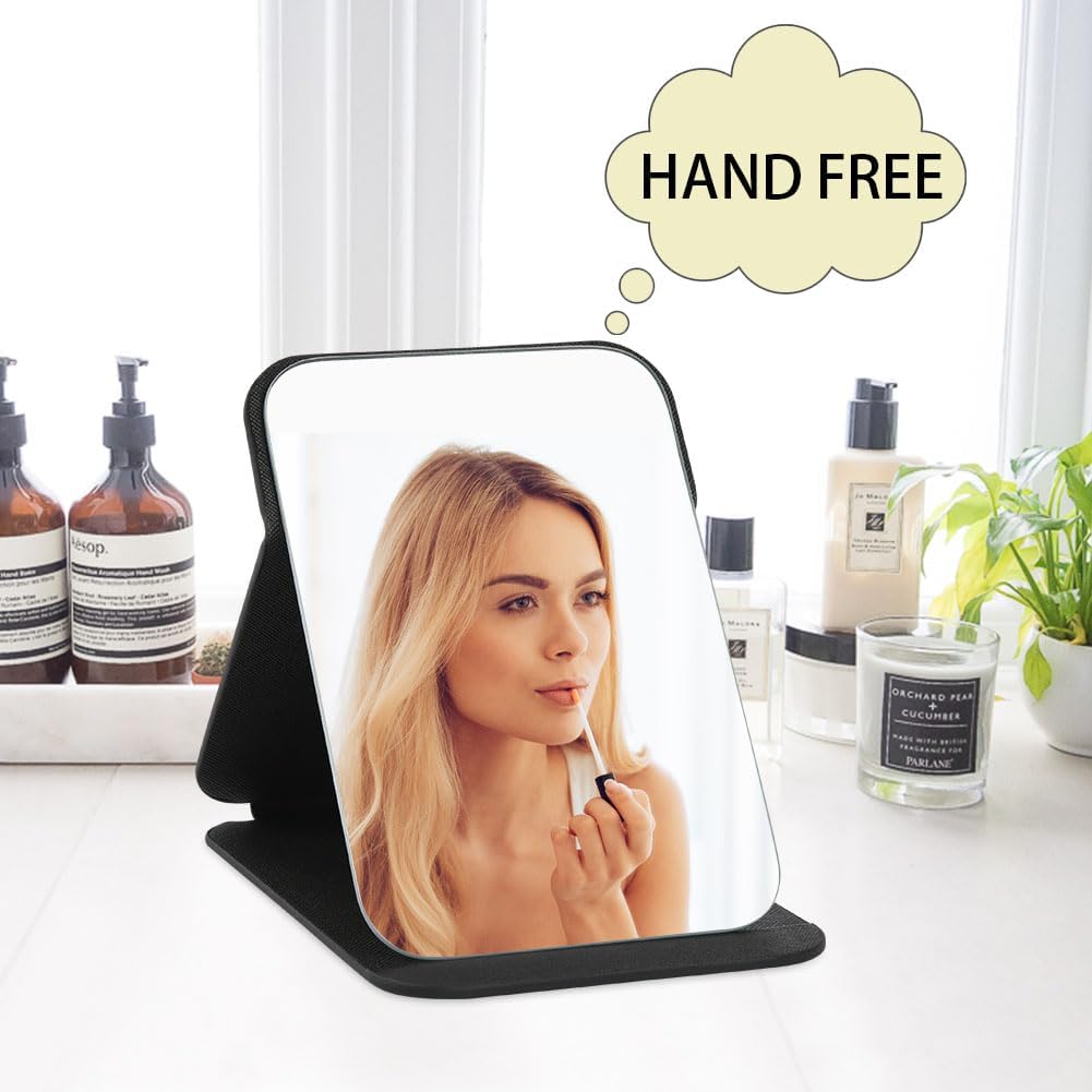 • Многофункционално: Това огледало за пътуване се предлага с регулируем държач. Сгъваемият дизайн го прави лесно за транспортиране и поддръжка. Може да стои стабилно на различни плотове, идеално за бани, спални, скринове, бюра, маси и др.