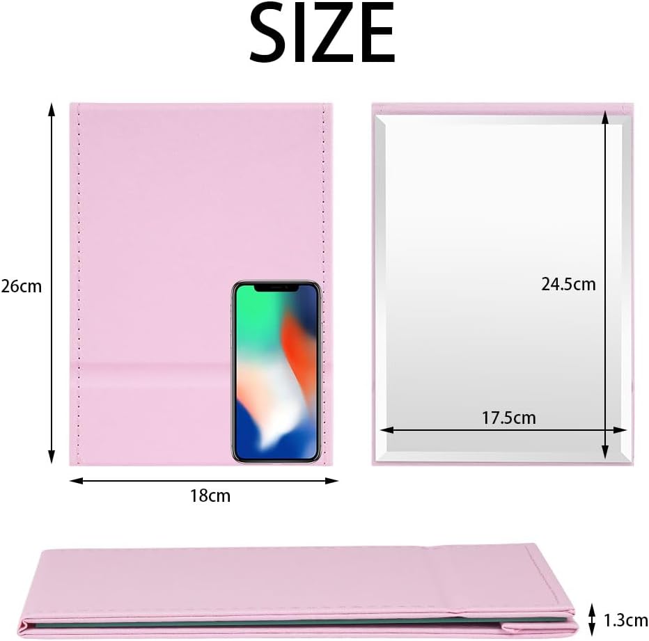 Сгъваемо огледало за пътуване OSDUE, сгъваемо огледало за грим, преносимо козметично огледало, сгъваемо огледало за пътуване за настолна, ръчна употреба, домашна и пътна употреба (изключително голямо - 26 x 18 см)