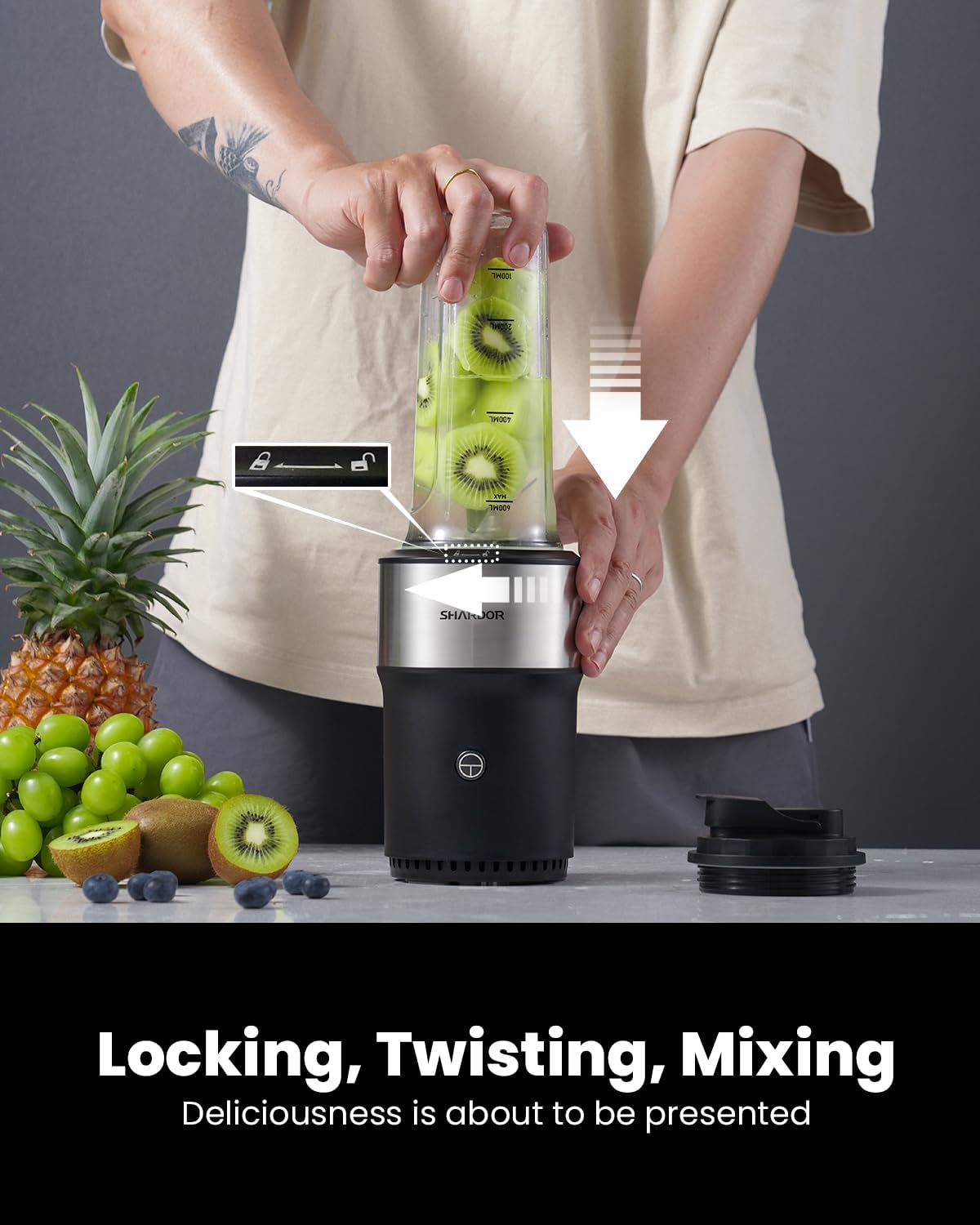 • Подобрено острие от неръждаема стомана с 6 остриета: този преносим миксер е с 6 остриета от неръждаема стомана 304, което го прави по-лесен за разбъркване от острието с 4 остриета. Просто натиснете бутона и съставките се превръщат в питателни сокове, шейкове и смутита за 10 секунди.