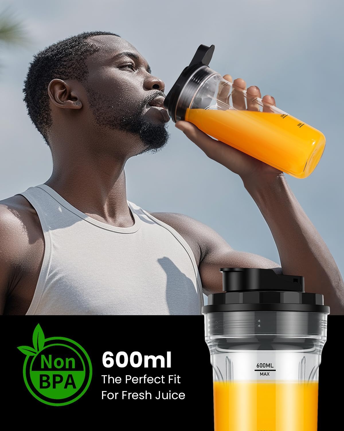 • 2 x 700 мл голям капацитет и преносимост: този блендер за смутита има 2 x 700 мл чаши за смесване и два преносими капака. Всички части са без BPA, за да се гарантира здравословна консумация. Може да се носи със себе си в офиса, фитнеса, класната стая или където и да отидете.
