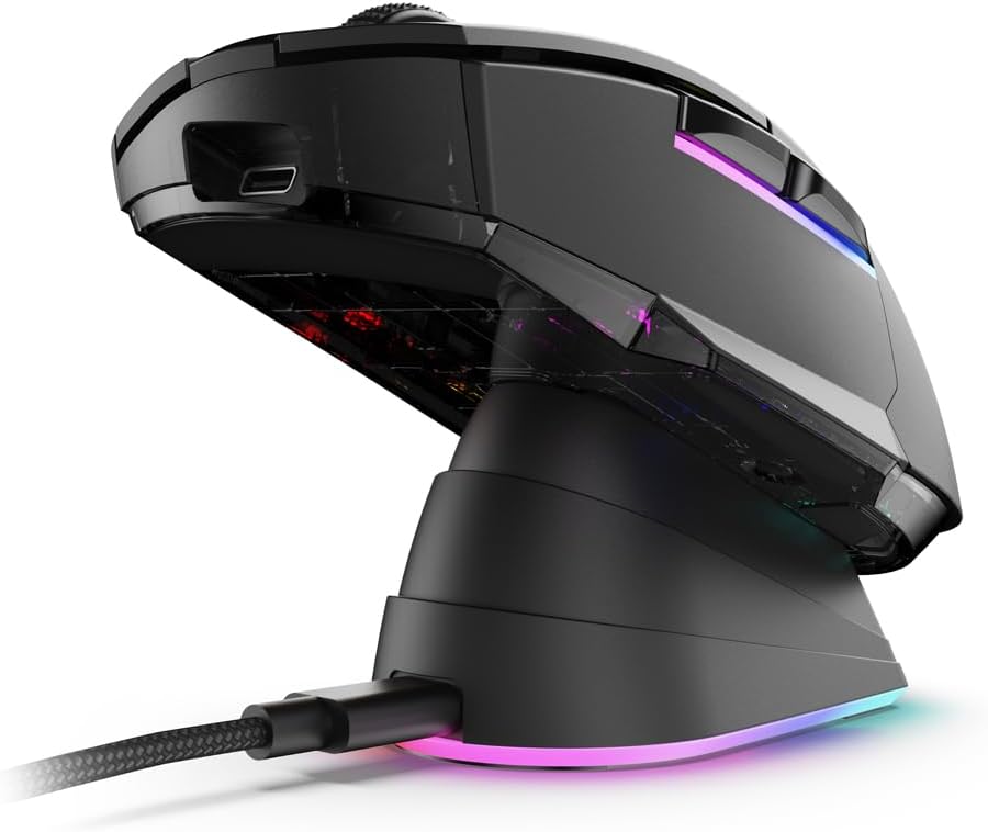 The SKILLER SGM50W battery life is designed for long periods of time with up to 70 hours. For charging, the mouse can be conveniently placed in the included charging station, in which the USB nano receiver can also be safely stowed away.