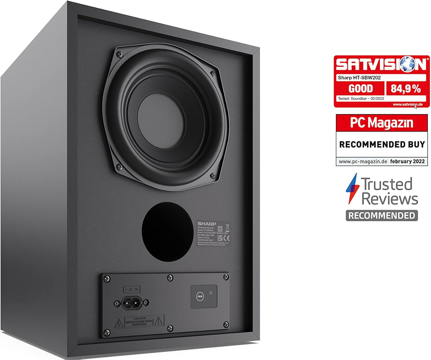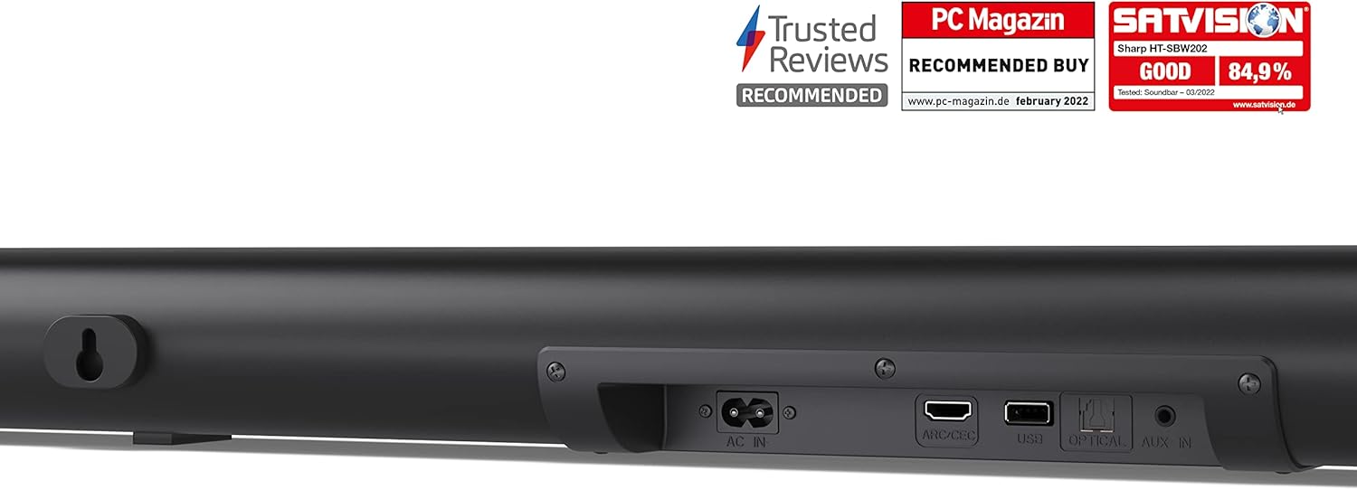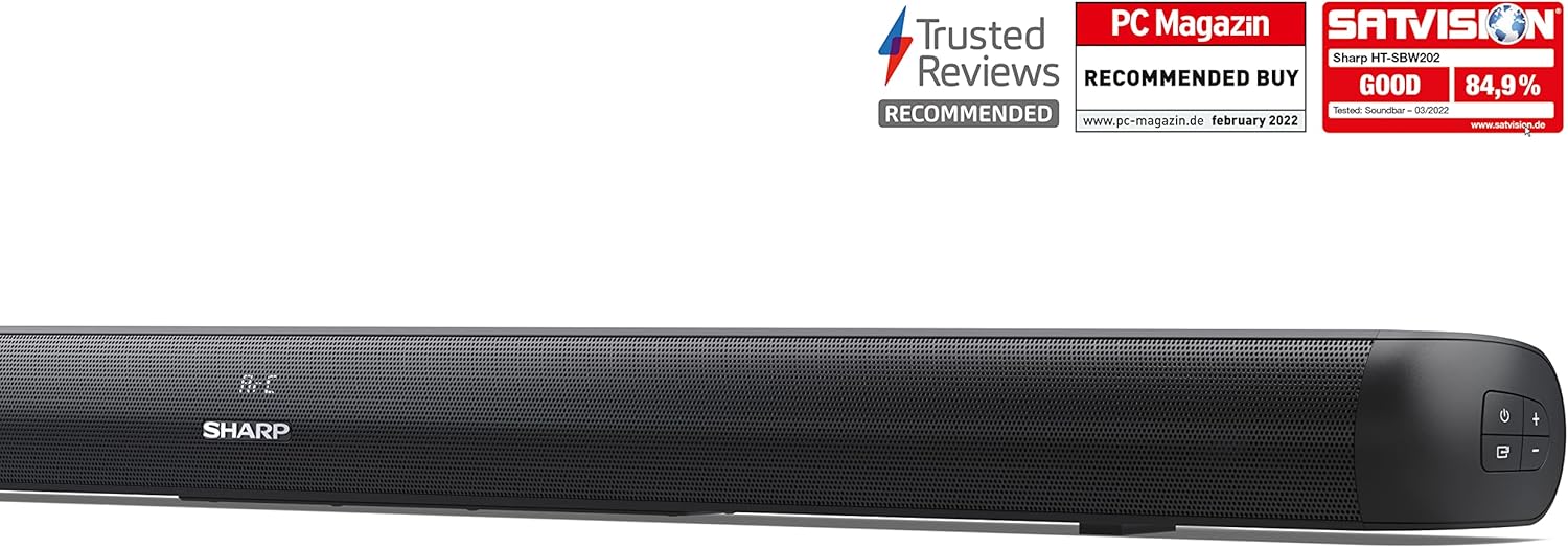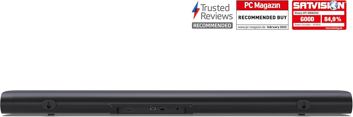 SHARP HT-SBW202 2.1-канален саундбар с безжичен субуфер - обща мощност 200 W, Bluetooth 4.2, HDMI ARC, USB MP3/WAV възпроизвеждане, оптичен вход, тънък дизайн за телевизори от 40 инча