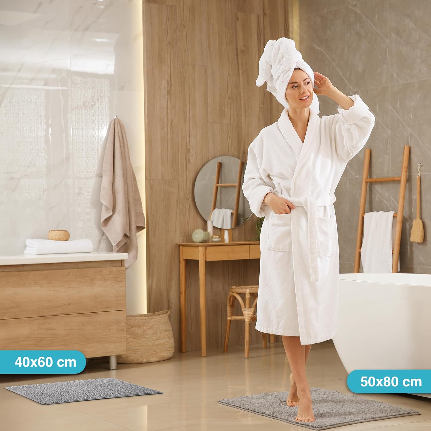 • Тествано качество: нашите малки килимчета за баня са антиалергични и щадящи кожата. Килимчетата за баня са тествани за вредни вещества съгласно Oeko-Tex Standard 100 под номер: 17.HCN.17654
