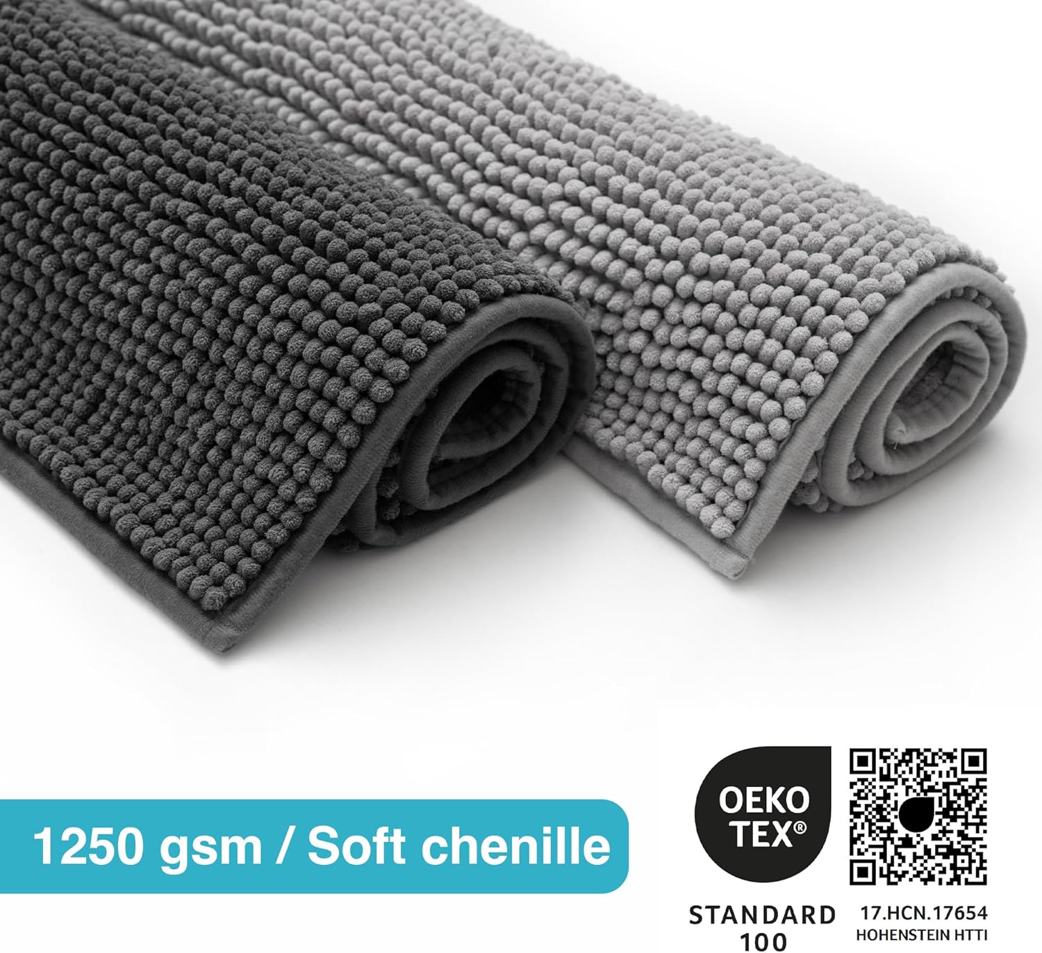• Тествано качество: нашите малки килимчета за баня са антиалергични и щадящи кожата. Килимчетата за баня са тествани за вредни вещества съгласно Oeko-Tex Standard 100 под номер: 17.HCN.17654