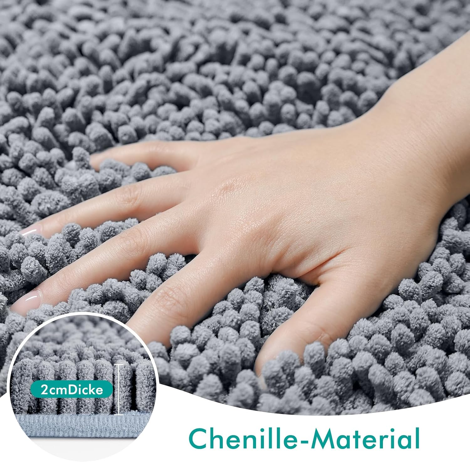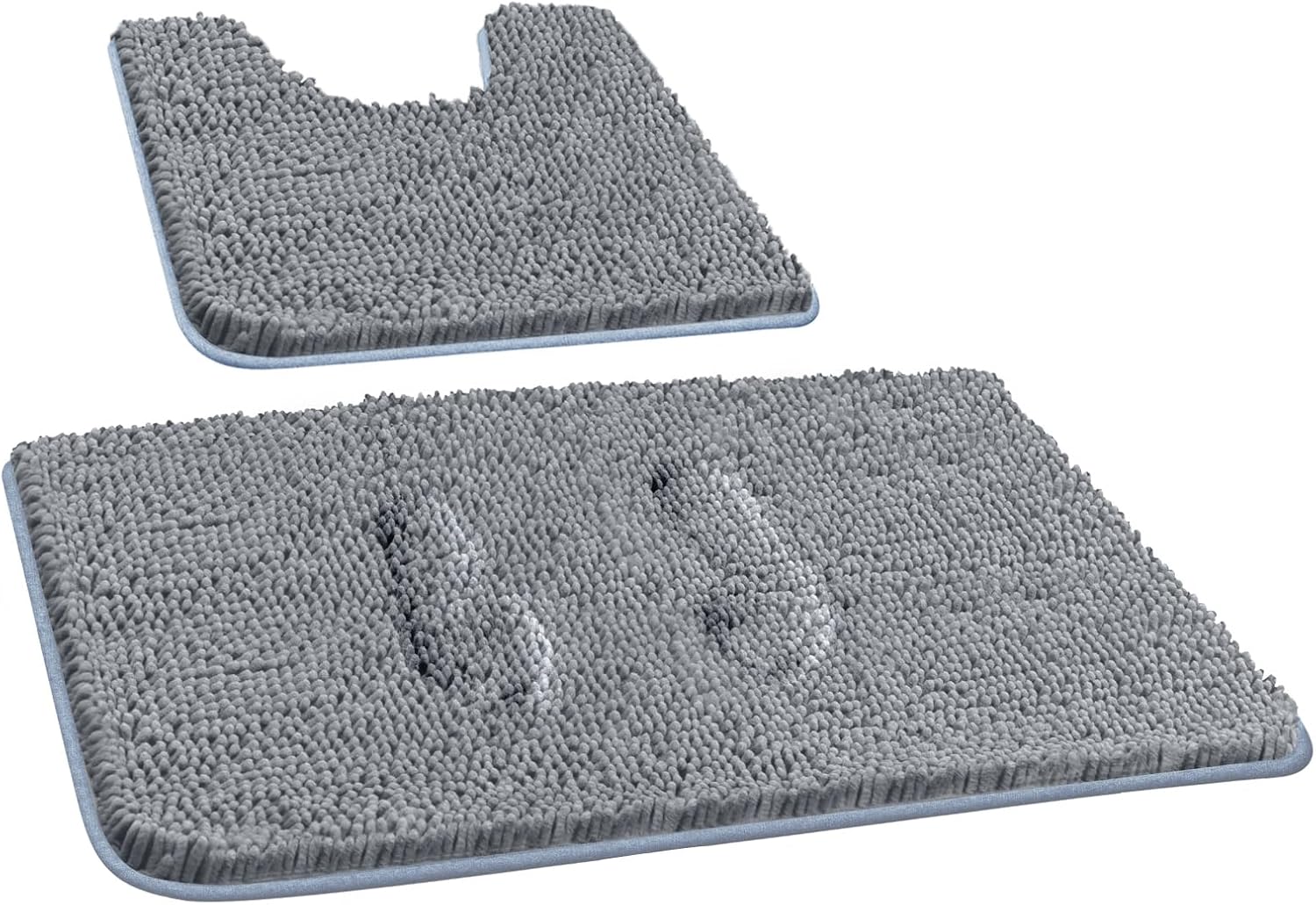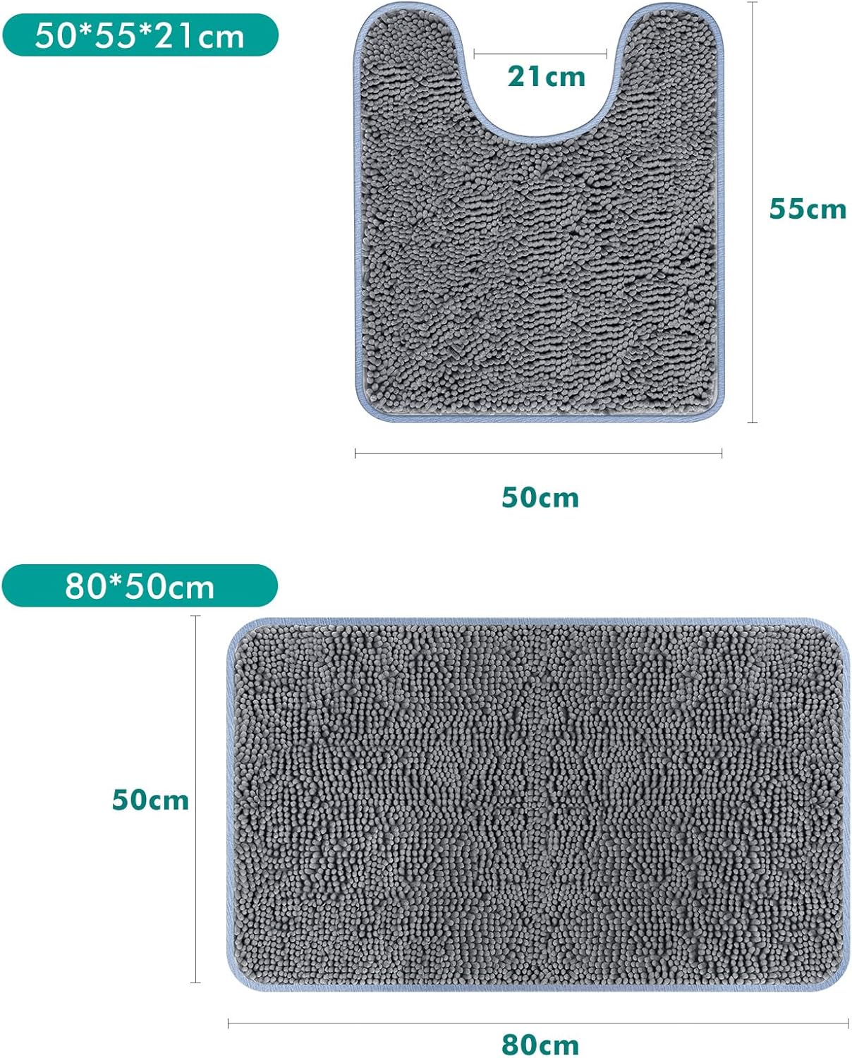 Шенилна постелка за баня, комплект от 2 килима за баня, неплъзгаща се постелка за душ и абсорбираща U-образна контурна постелка и изтривалка за врата за баня, душ, переща се и супер мека, 80 x 50, 55 x 50, тъмносиво