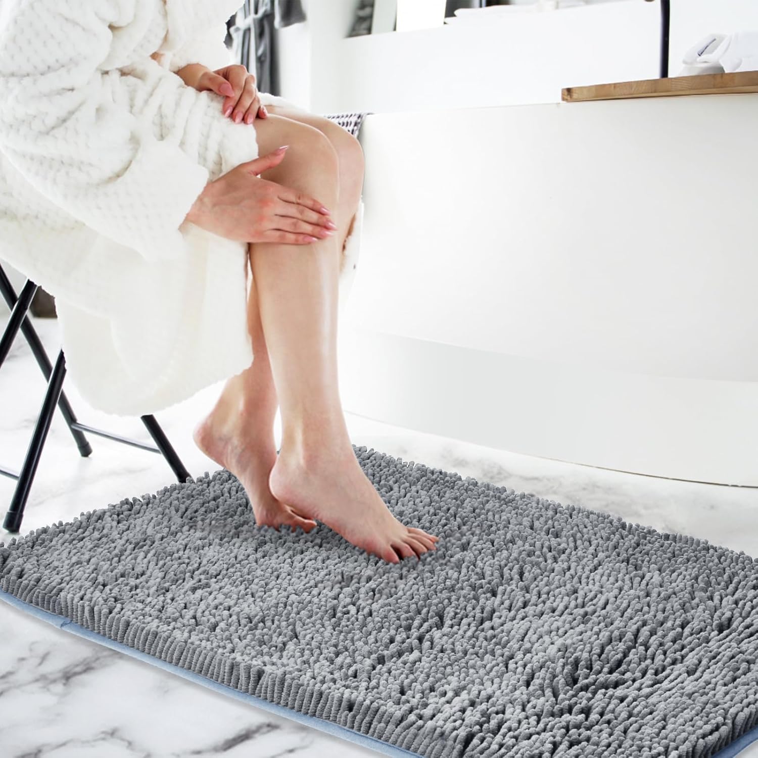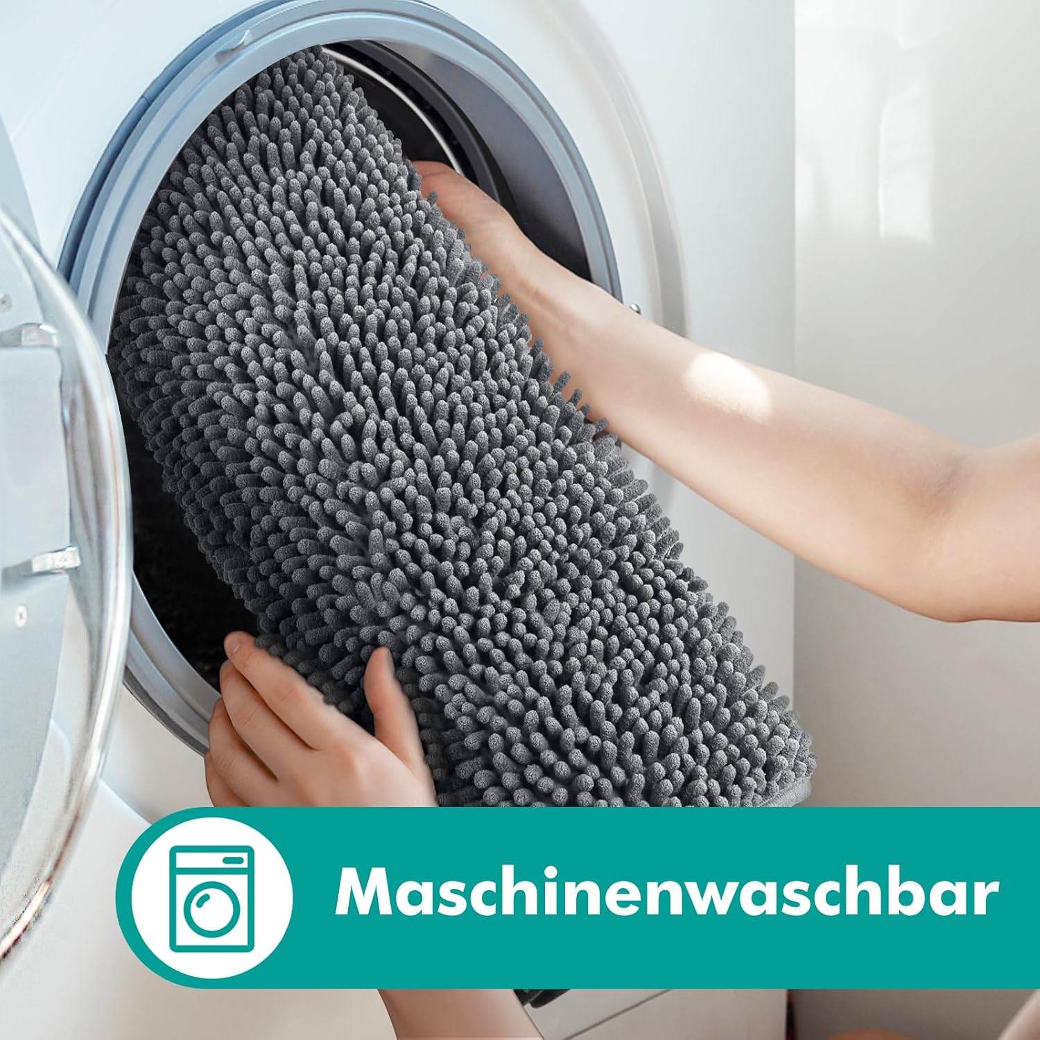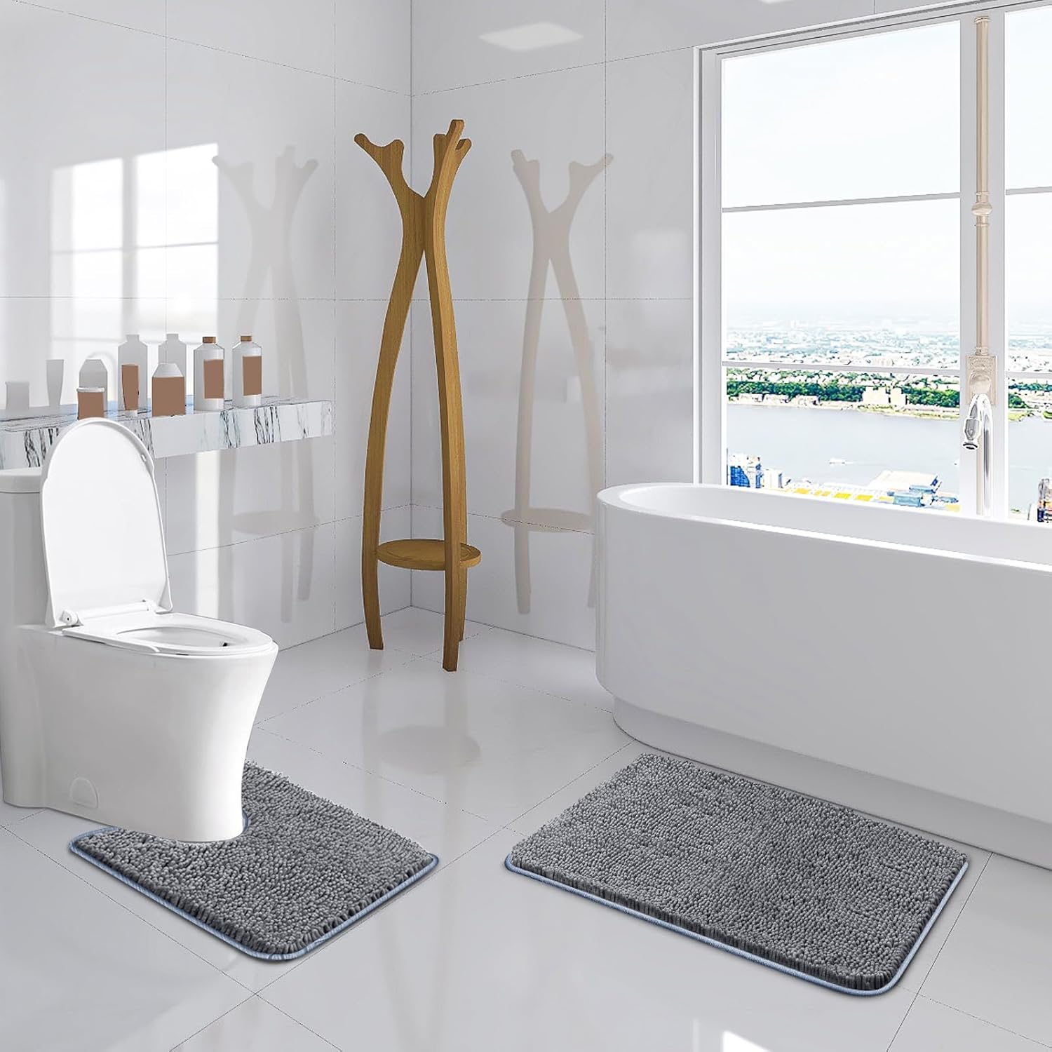 Шенилна постелка за баня, комплект от 2 килима за баня, неплъзгаща се постелка за душ и абсорбираща U-образна контурна постелка и изтривалка за врата за баня, душ, переща се и супер мека, 80 x 50, 55 x 50, тъмносиво