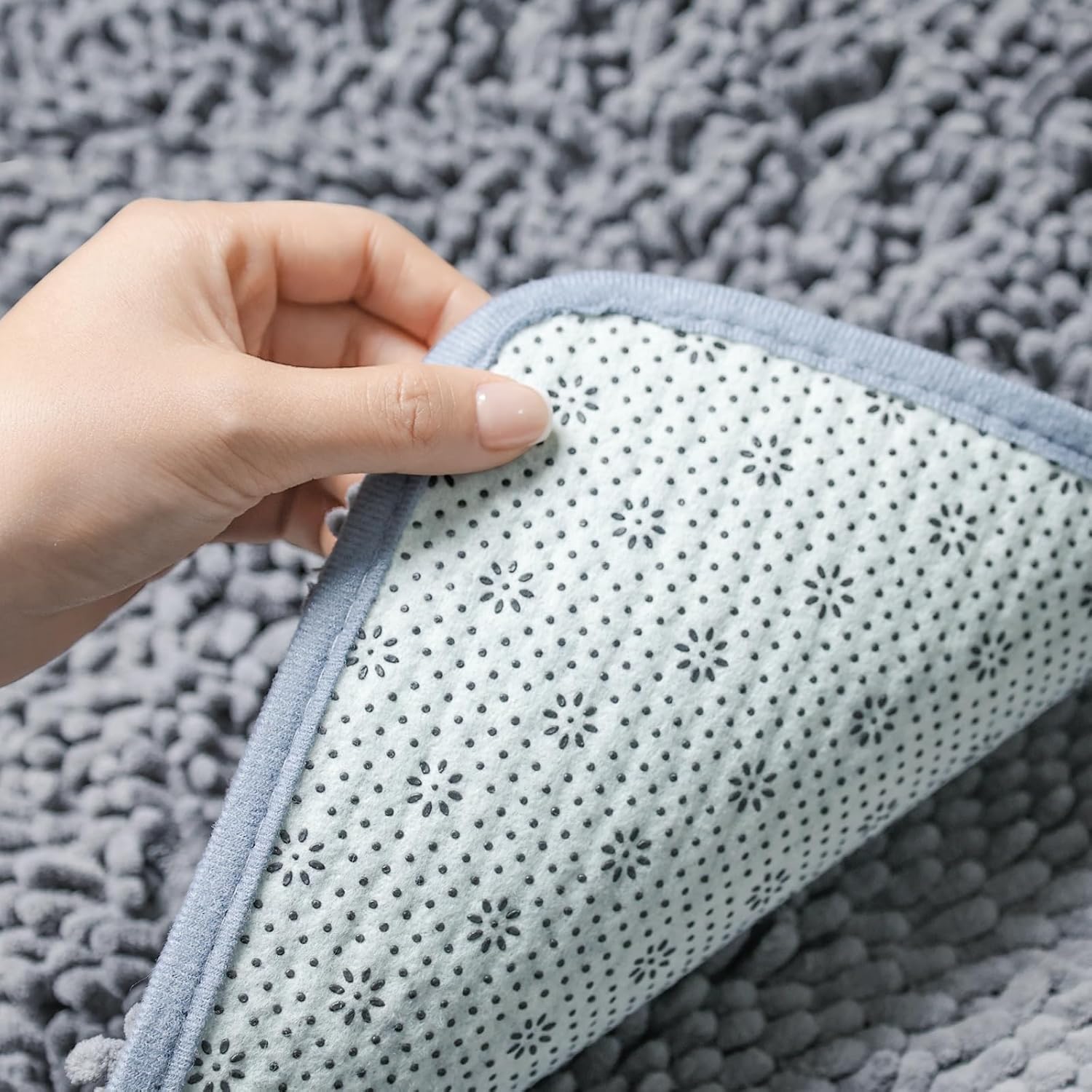 • TPR противоплъзгаща подложка: гърбът е снабден с противоплъзгаща TPR конструкция, която държи постелките за баня здраво на място. Тя е по-издръжлива от PVC материала и по-малко податлива на повреди. В сравнение с материала с горещо лепило, тя е по-дебела и по-гладка. (Моля, уверете се, че подът е сух, преди да поставите постелката.)