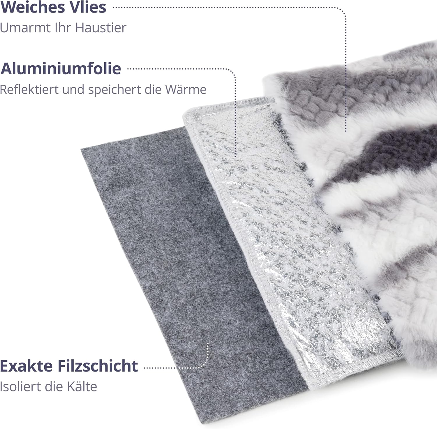 • БЕЗ ЕЛЕКТРИЧЕСТВО И САМОСТОЯТЕЛНО ЗАГРЯВАНЕ: Благодарение на алуминиевото фолио, което улавя и излъчва телесната топлина на вашия домашен любимец, то поддържа домашния любимец топъл дори без електричество, което е по-екологично и безопасно.