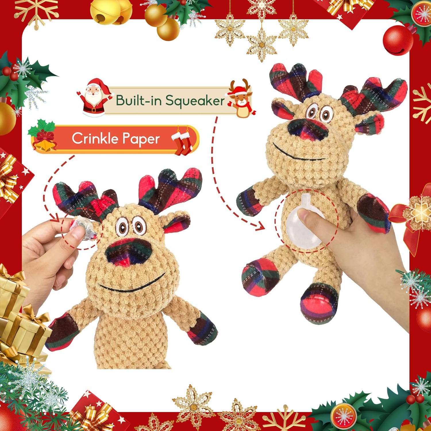 Всеки иска да получи свои собствени подаръци за Коледа и кучетата не са изключение! Нашите коледни скърцащи плюшени играчки за кучета ще бъдат вашият идеален избор! Скърцащата плюшена играчка за кучета има ярки цветове и коледни елементи във форми, които могат да заинтересуват кучетата и да им позволят да се насладят на коледното забавление.