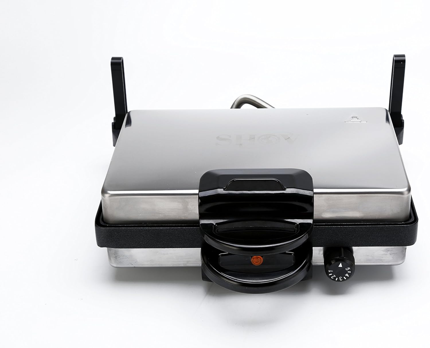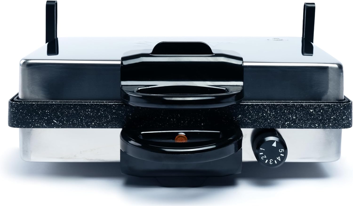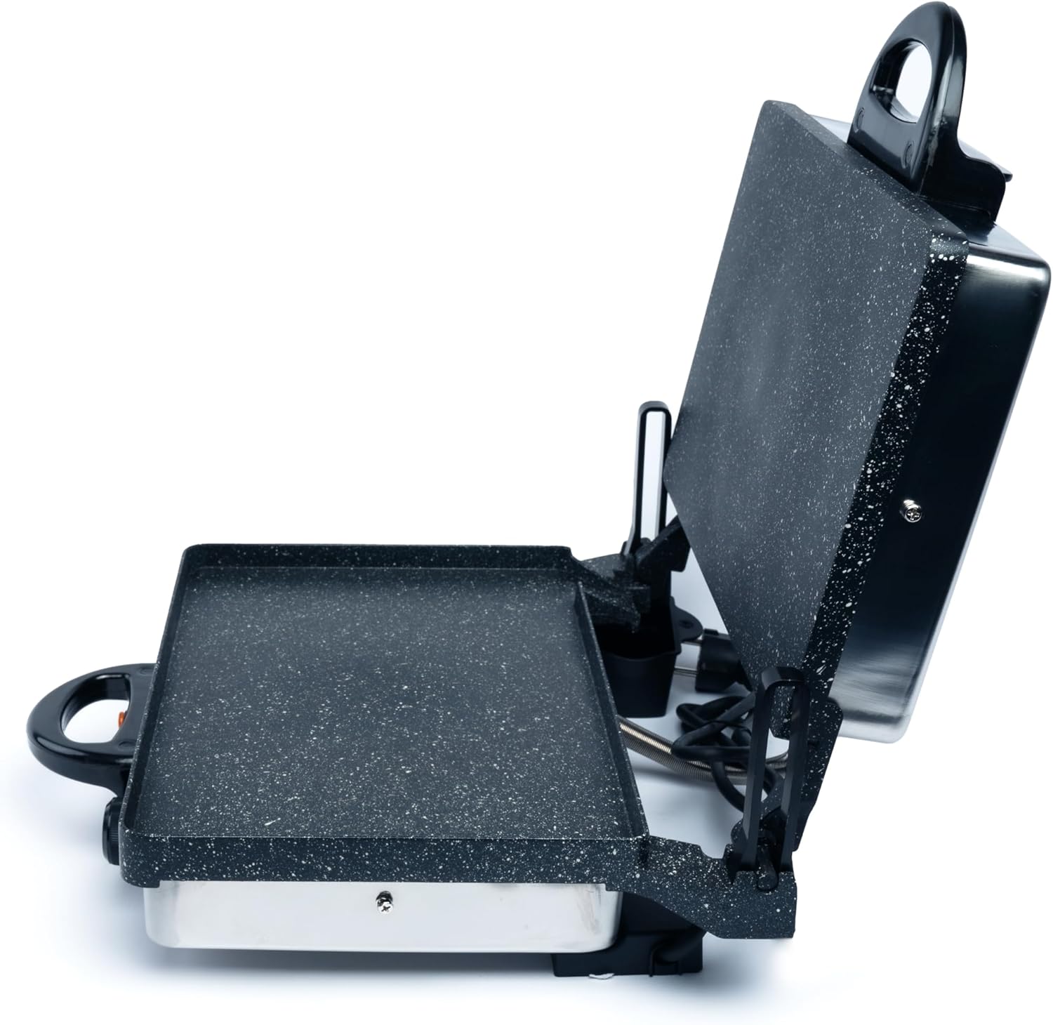 Мултигрил тандур Shov с касар ролка, покритие от гранит Tava за здравословно готвене, висококачествена изработка и качество, безстепенно регулиране, 5 нива на регулиране, система за капене и събиране на олио. Индикатор за мощност (оранжева светлина) 230 V ~ 50/60 Hz - 2000 W Плочи за грил и печене 34,8 x 22,8 см Здравословно удоволствие от готвенето благодарение на долното и горното нагряване Подходящ за печене на грил, препичане, готвене, печене, задушаване, затопляне и поддържане на топлина