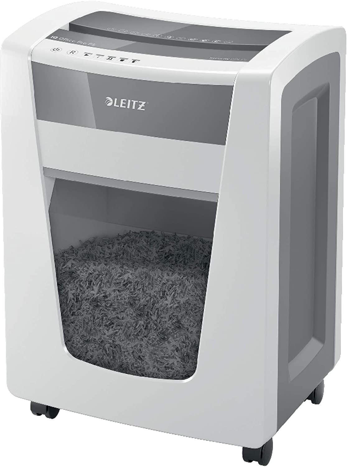 Шредер Leitz IQ Office Pro P5, За хартия/телбод/кламери, Ниво на сигурност P-5, Колелца, Защита от задръстване, 30л, Сив