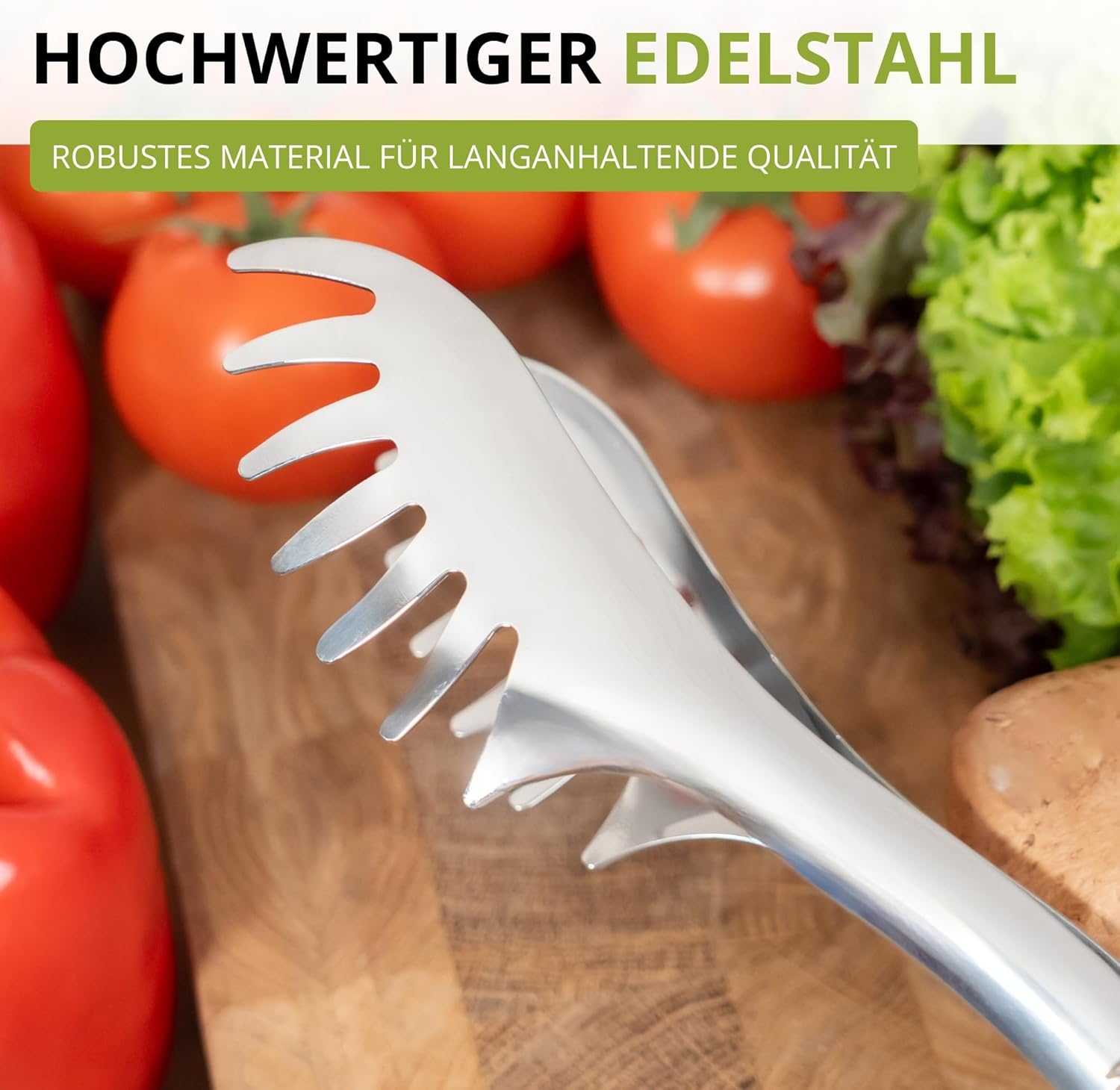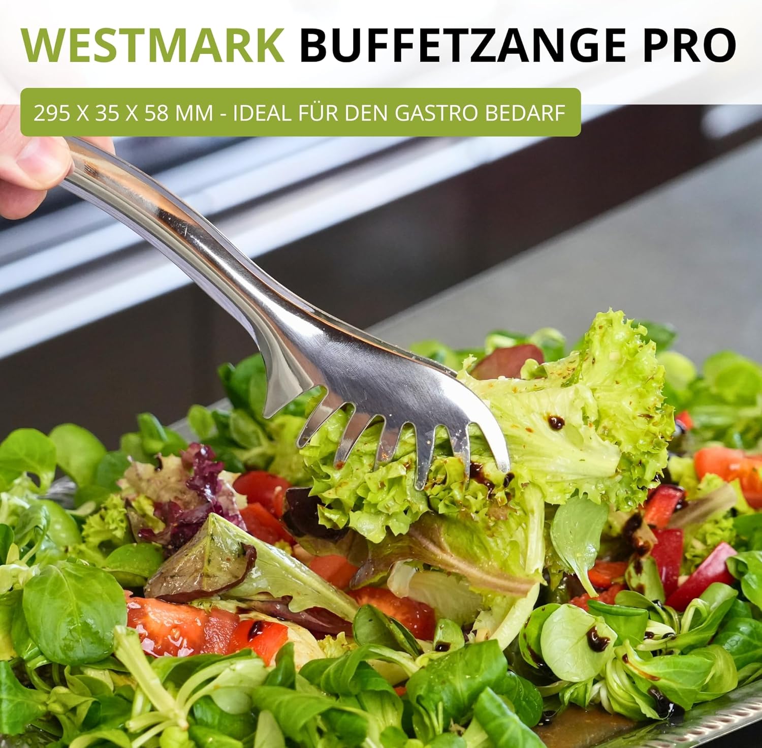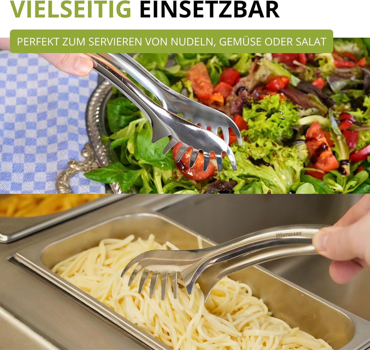 Щипки за спагети Westmark Spaghetti and Buffet Pro – Кухненски щипки от неръждаема стомана – Иновативни щипки за спагети – Сервиращи щипки за паста, салата и аспержи – Сребърни, 29,5 см