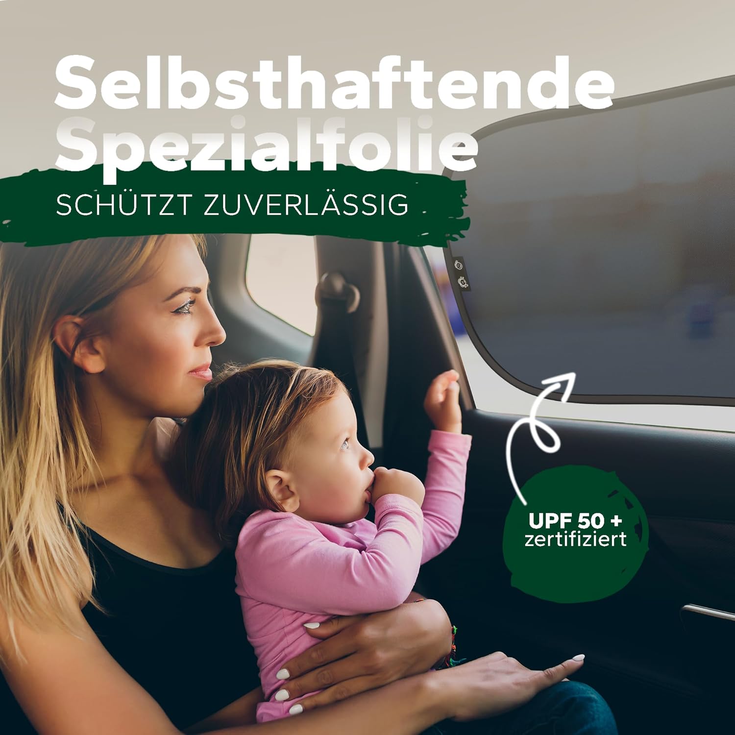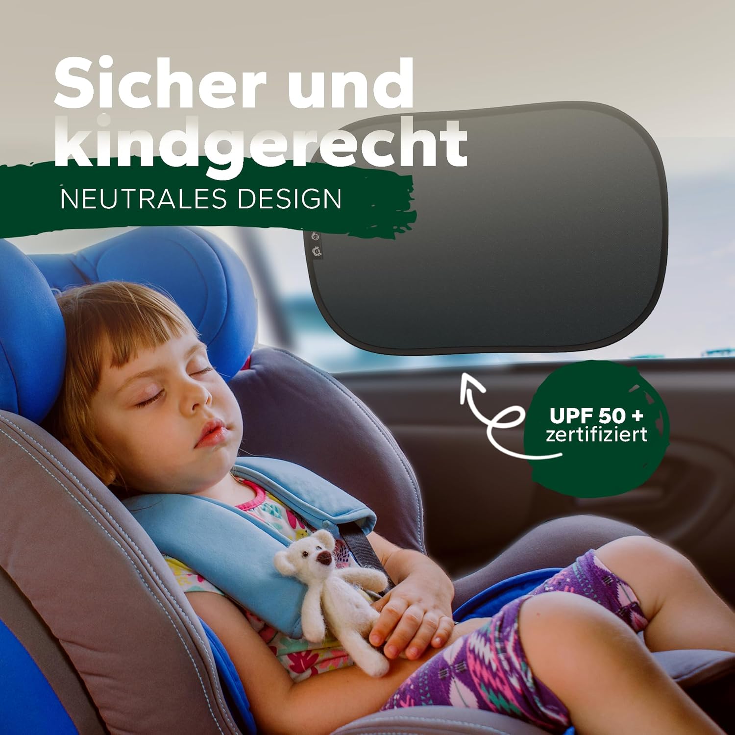 • Сертифицирана UV защита – UPF 50+: Нашият слънцезащитен крем надеждно предпазва от вредното UV лъчение и намалява температурата в автомобила. Идеален за всички пътници, млади и стари.